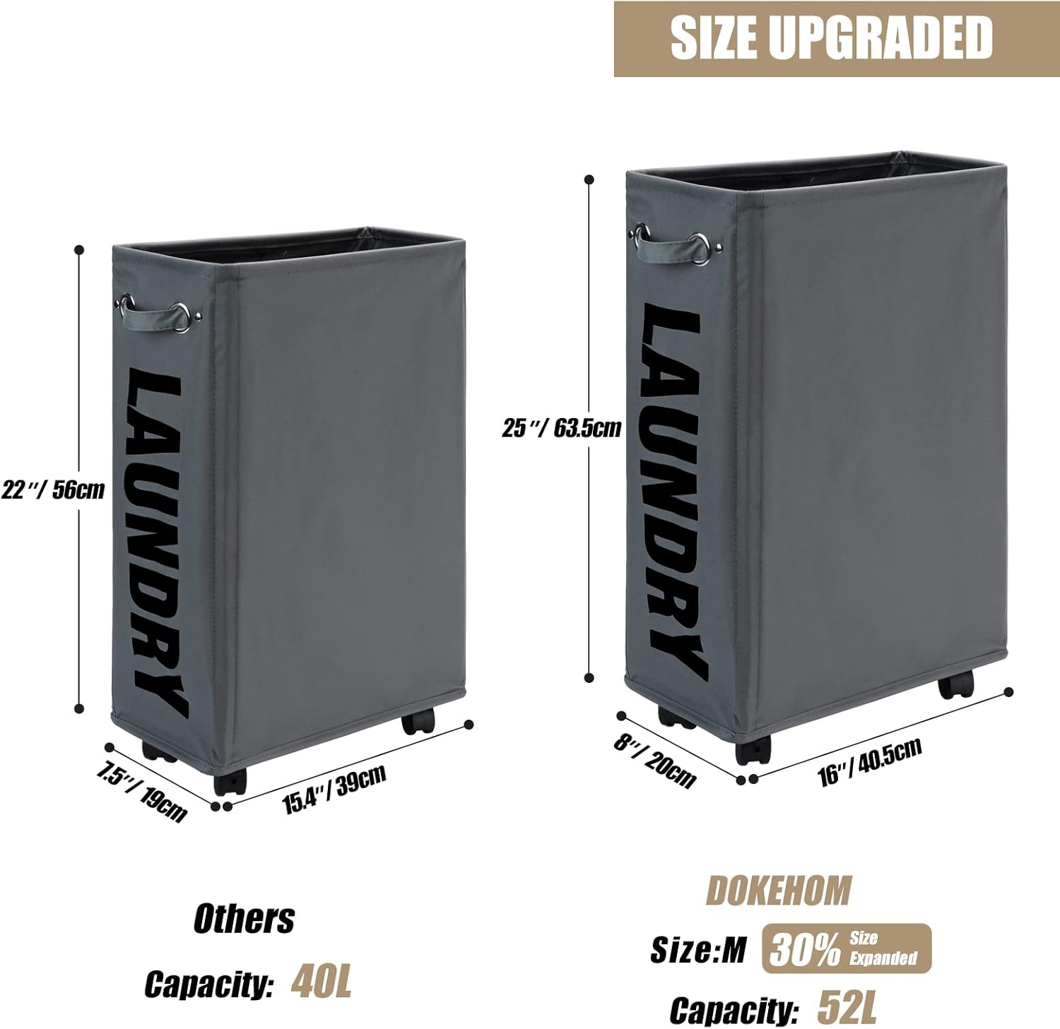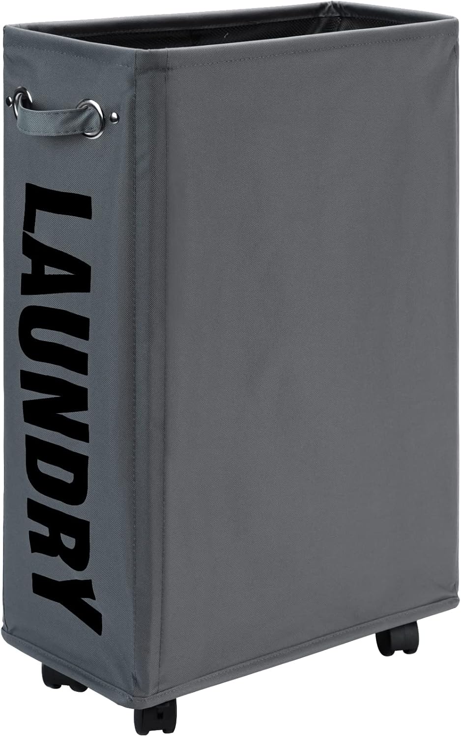 DOKEHOM 25-Inches Slim Laundry Basket on Wheels, Collapsible Rolling Laundry Hamper, Foldable Narrow Corner Clothes Storage Bins (Dark Grey)