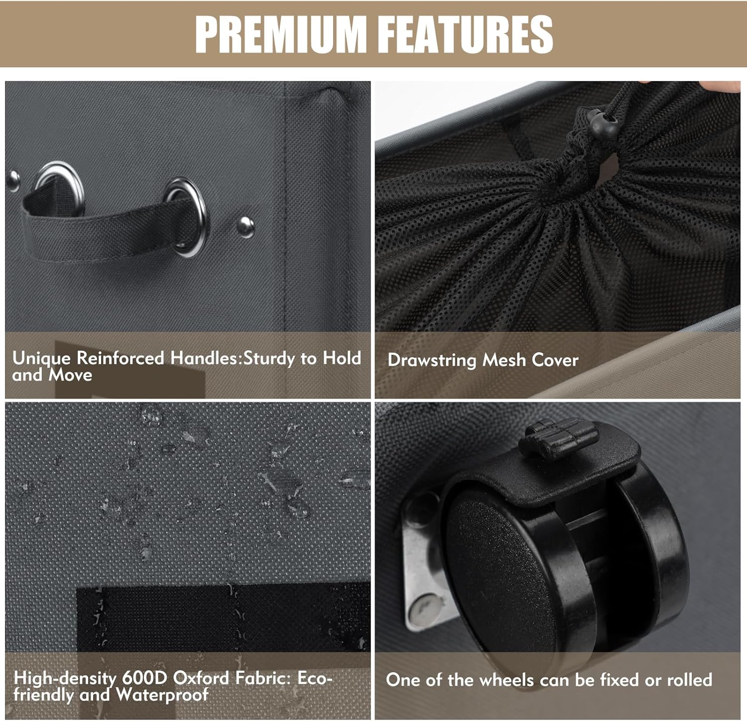• 4 WHEELS - The laundry hamper on wheels is easy to move, brake on one of the wheels ensure safety for home use