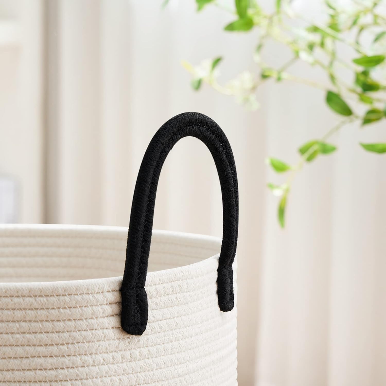 VIPOSCO Large Laundry Hamper, Tall Woven Rope Storage Basket for Blanket, Toys, Dirty Clothes in Living Room, Bathroom, Bedroom - 72L White & Black