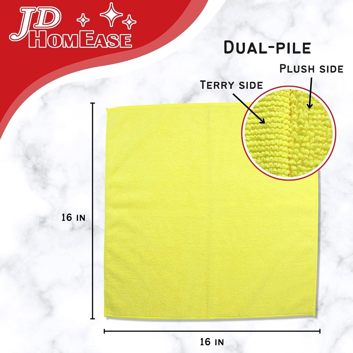 Microfiber Cleaning Cloths,48 Pack, 16"x16", All-Purpose, Softer, Highly Absorbent, Lint-Free, Reusable, Washable Pro Towels, Yellow, for House, Kitchen, Bathroom, Car, Office