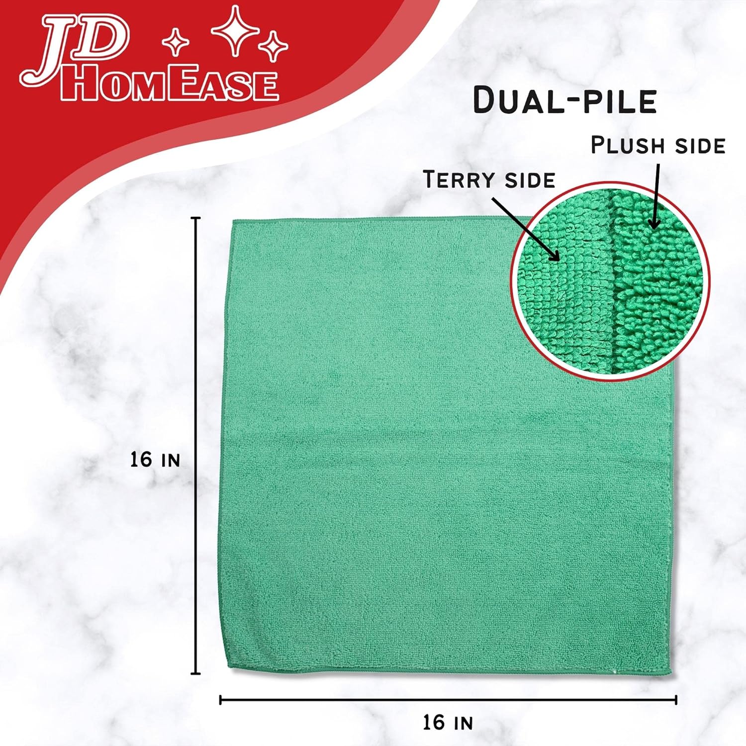 Microfiber Cleaning Cloths, 240 Pack, 16"x16", All-Purpose, Softer, Highly Absorbent, Lint-Free, Reusable, Washable Pro Towels, Green, for House, Kitchen, Bathroom, Car, Office
