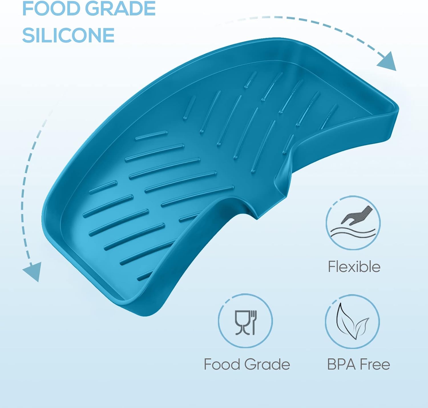 - Superior Quality High Purity Silicone: Our kitchen sink tray is made of superior quality high purity silicone which is BPA free and flexible, it won't crack, peel or become brittle.This silicone sponge holder is heat resistant for use with hot tools and it is easy to clean, you can put this sink tray into the dishwasher.
