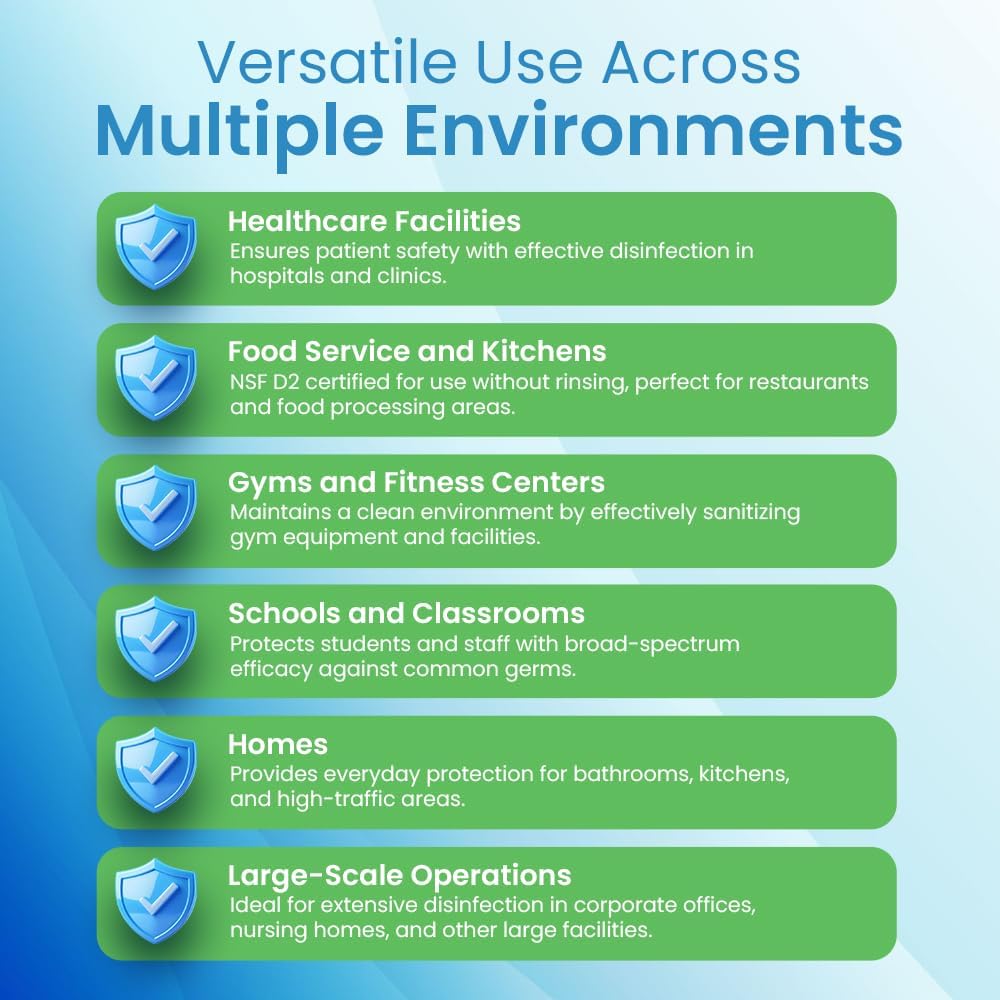 • Versatile Cleaning Applications: Perfect for sanitizing kitchens, bathrooms, floors, equipment, and more. Use as a kitchen disinfectant, floor disinfectant, or food safe cleaner spray to maintain a healthy environment
