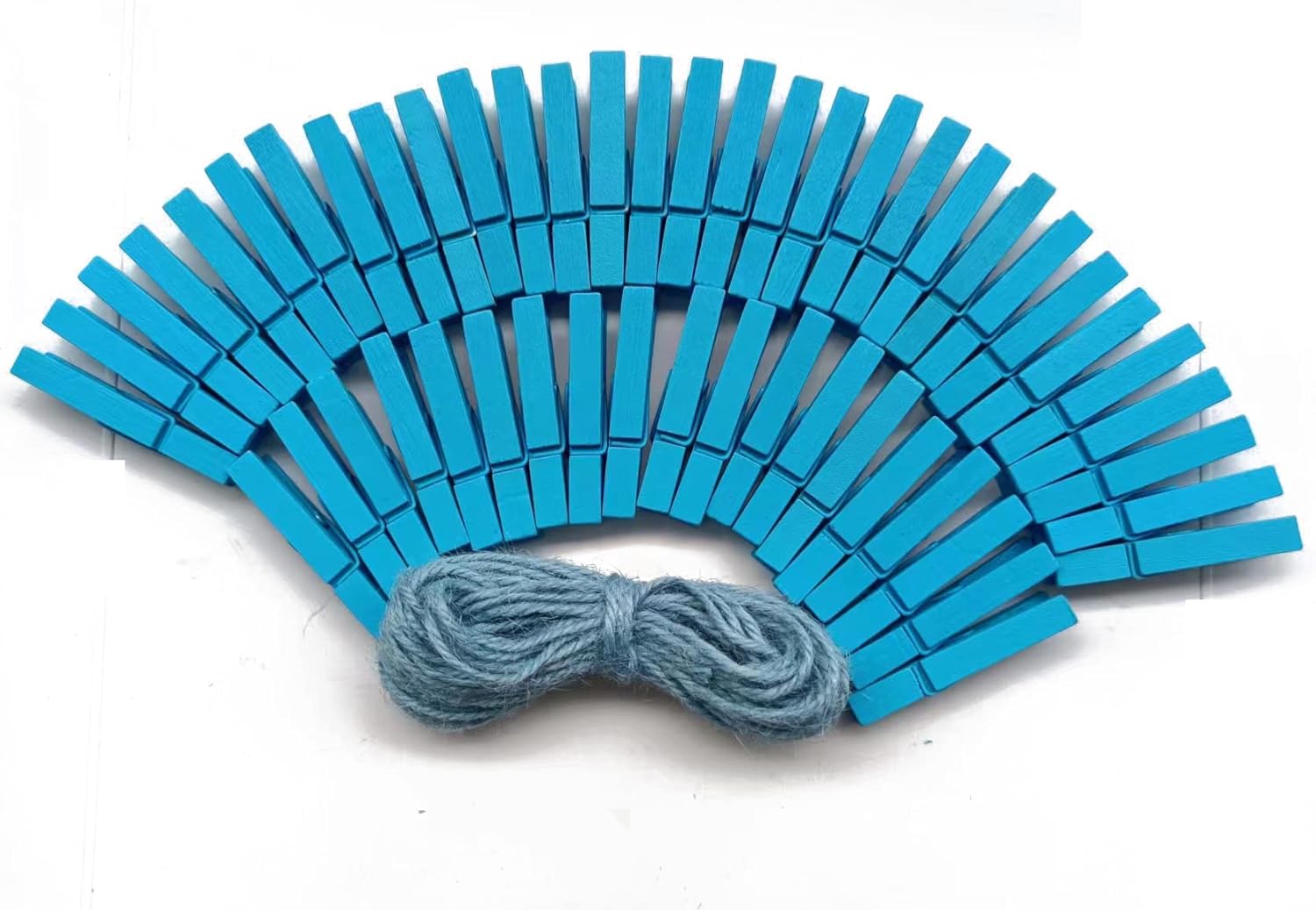 • Clothespins set: 50 pieces bright blue wooden clothes clips with 10 meters (33feet) bright blue jute twines to hang pictures or art craft Decor