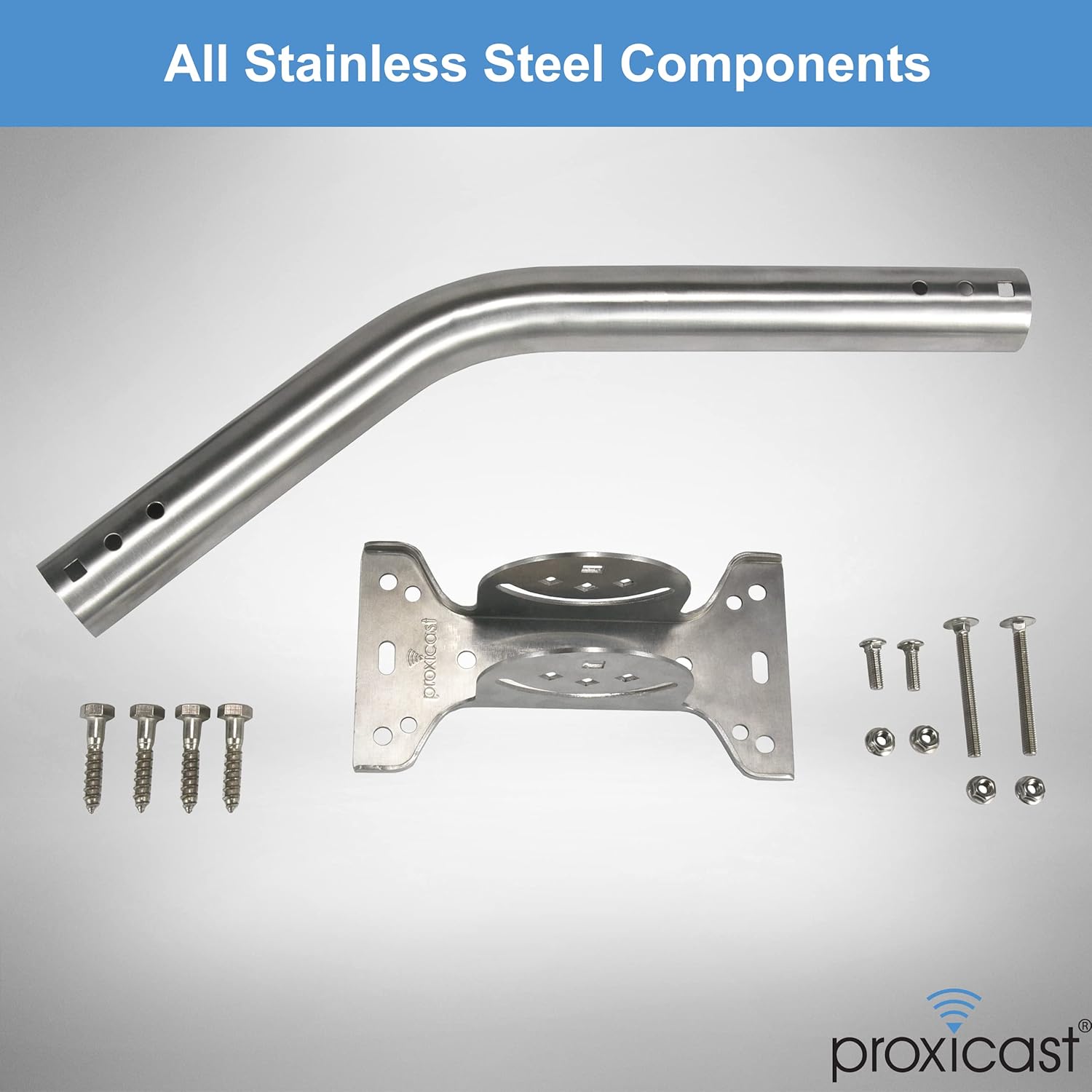 Proxicast Pro-Grade J-Max 100% Solid Stainless Steel Antenna Mount - Universal Outdoor Adjustable Pivot/Lock Bracket & J-Pipe Mast (1.5" x 36" Pole) for Wall, Eave or Roof Mounting (ANT-800-JP3-XL)