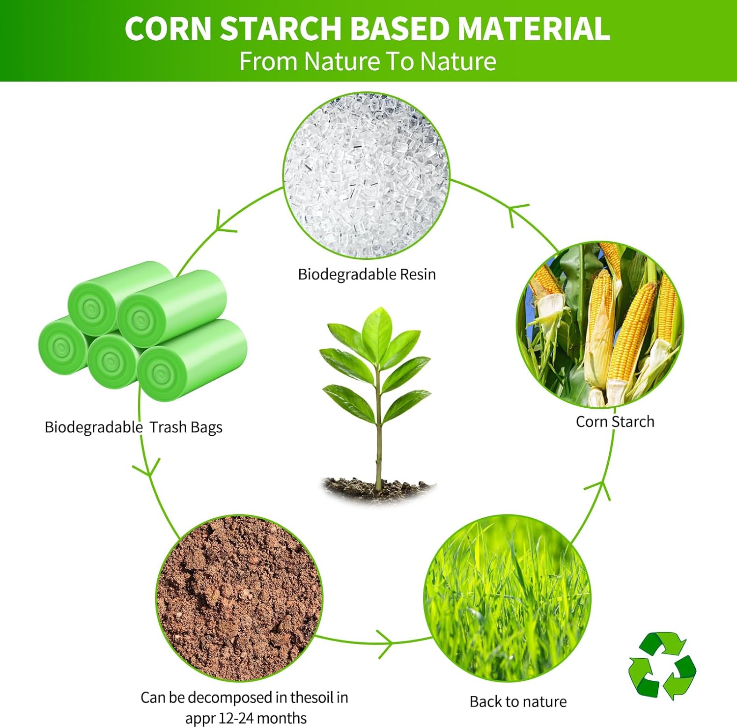 • Biodegradable Trash Bags - No smell, non-toxic and eco-friendly (break down quickly in industrial compost facilities)