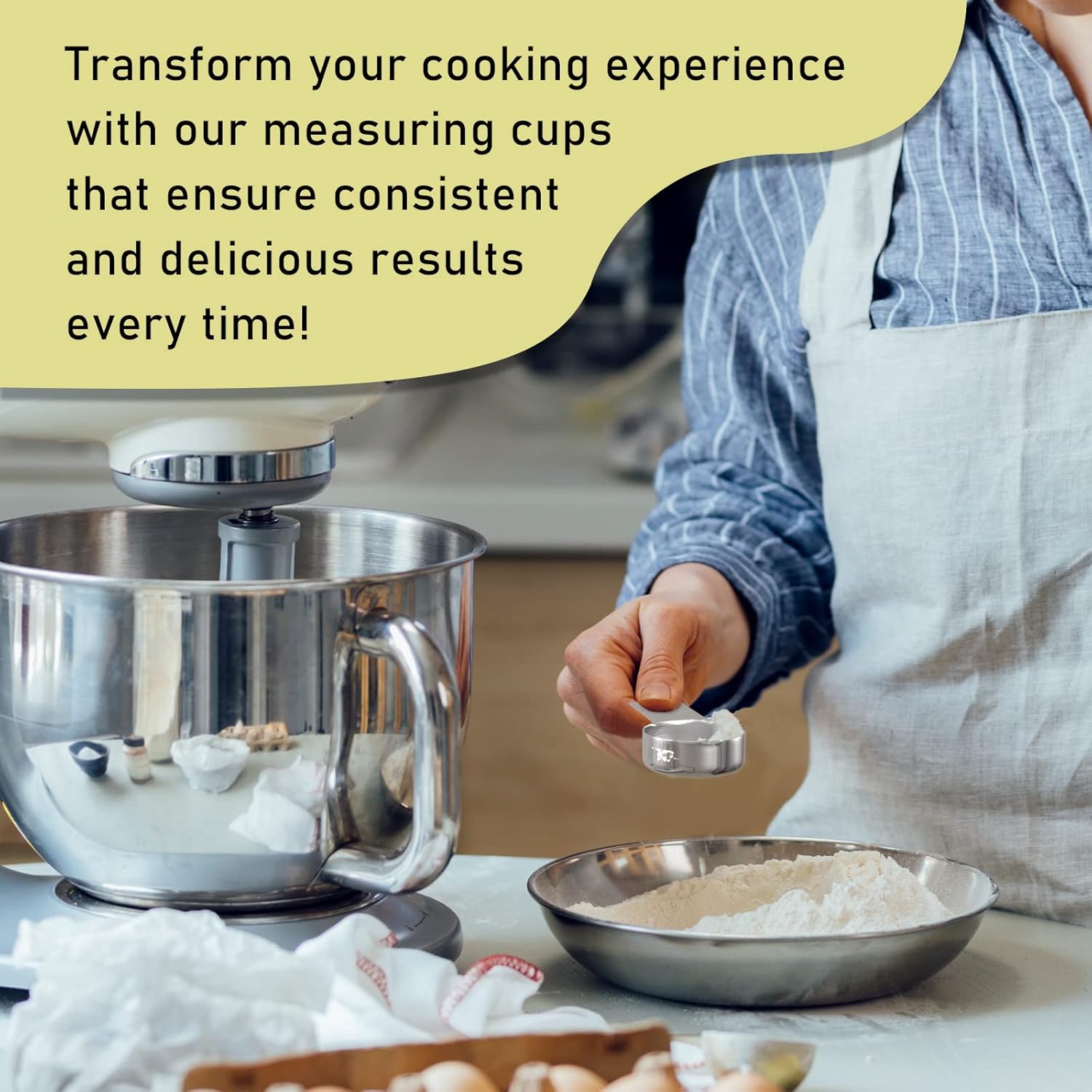 • 【Durable】The integrated molded 304 stainless steel measuring cup is designed for sturdiness and durability, with a solid construction that can withstand regular use without breaking or warping