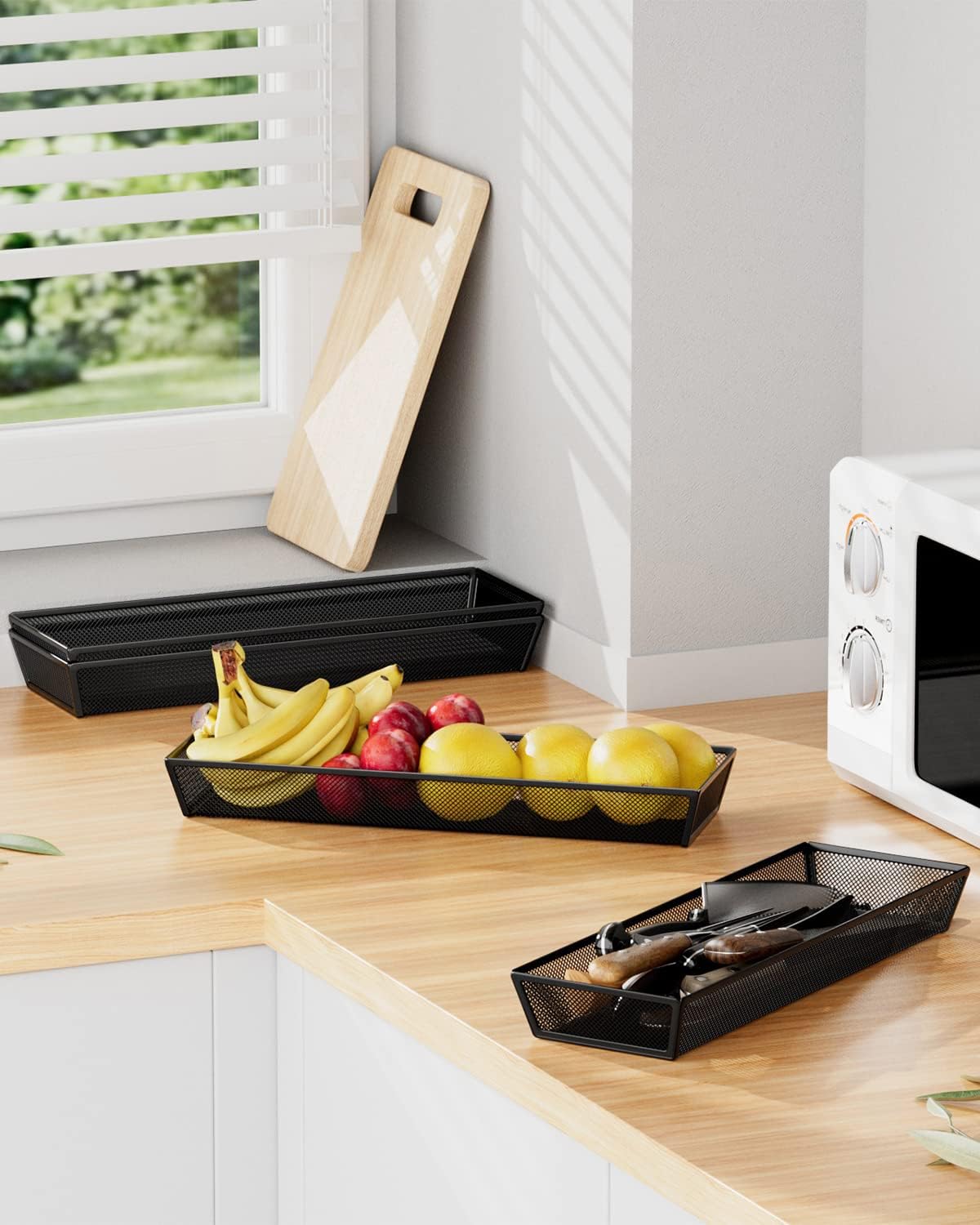 • Multi-utensil holder drawer : In addition to storing tableware, utensils, silverware and other kitchen items, it is also a good choice for placing fruits, snacks and office utensils.