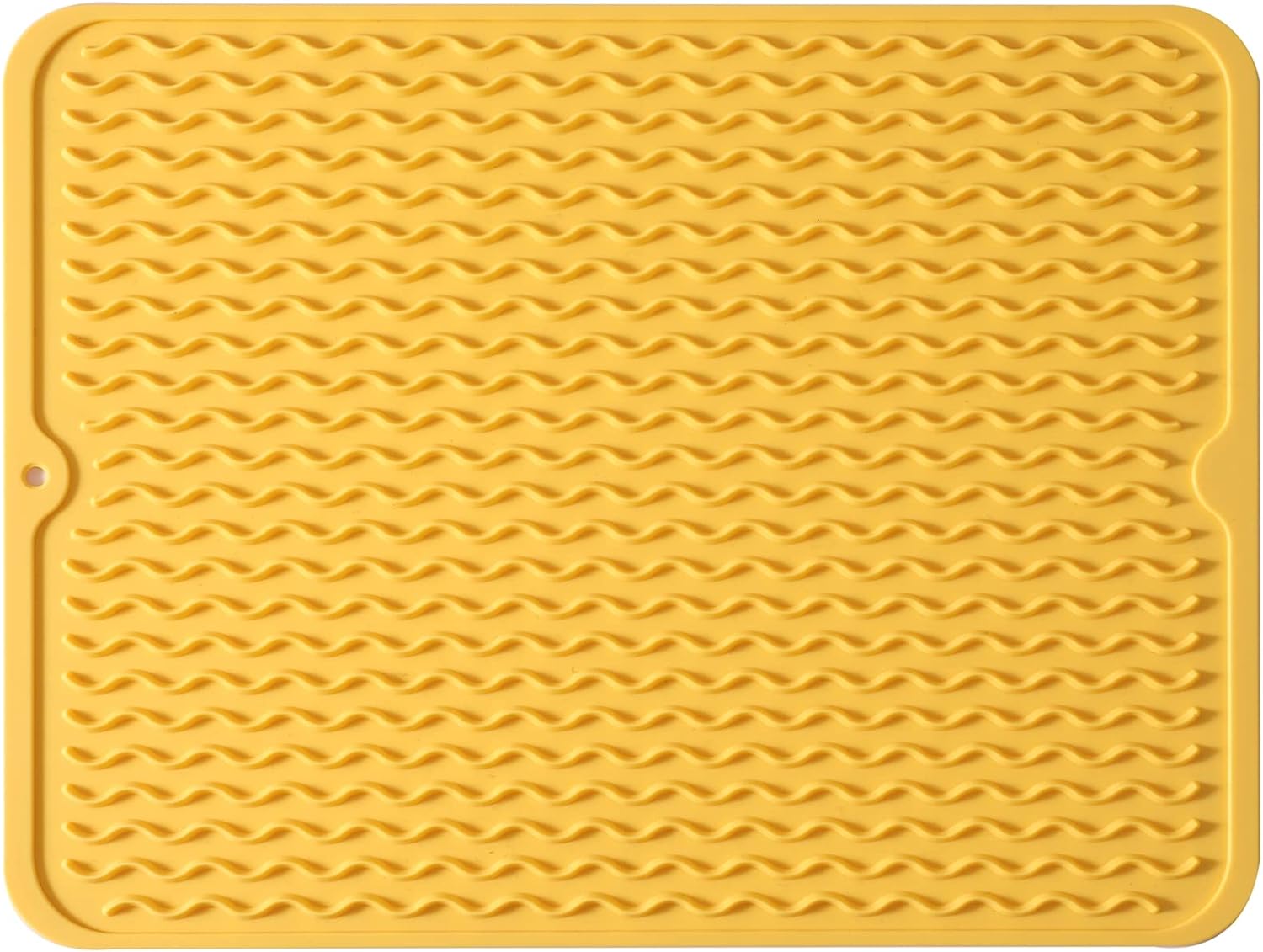 Silicone Dish Drying Mat for Multiple Usage,Easy clean,Eco-friendly,Heat-resistant Silicone Mat for Kitchen Counter or Sink,Refrigerator or drawer liner Yellow L 16 inches x 12 inches