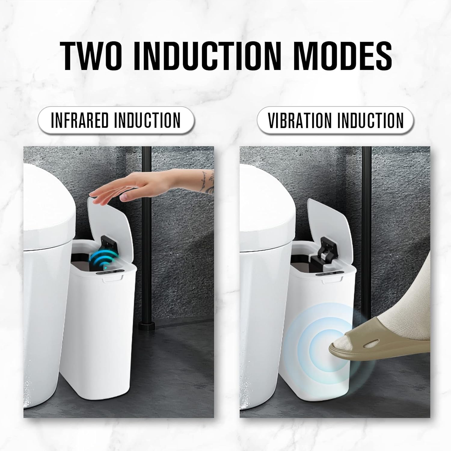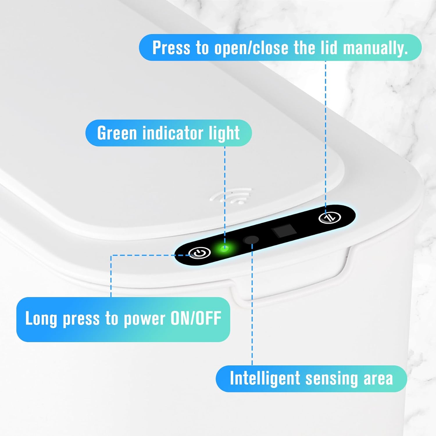 • Designed for Narrow Spaces: Our smart trash can has a slim shape that makes it a fit in a bathroom or wherever space is tight. Are you still annoyed that the narrow space in the room is being wasted? Use it to improve your space utilization