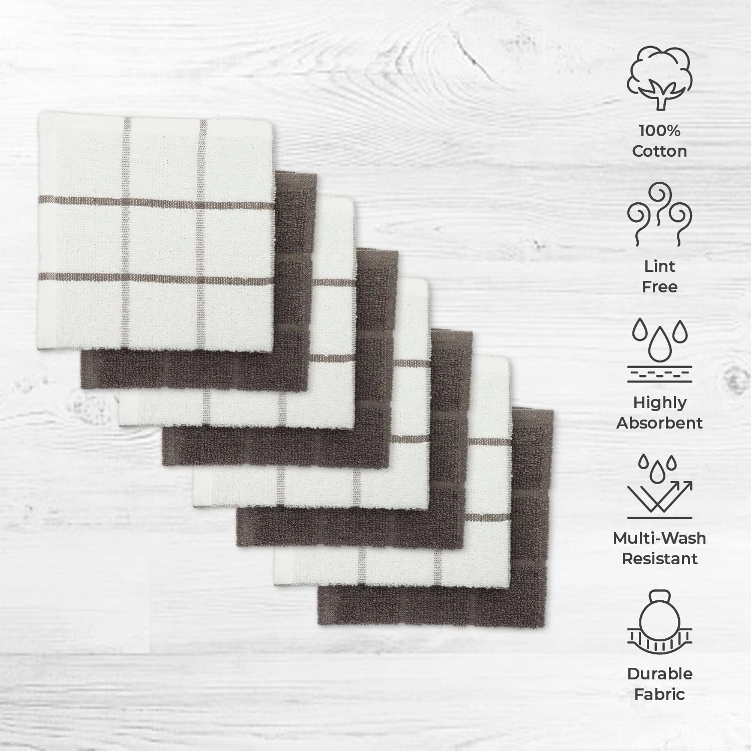 100% Cotton Terry Dish Cloth & Dish Towel, 6 Pack, Super Soft and Absorbent Kitchen Towels, Perfect for Kitchen Cleaning and Dish Washing (Grey (Solid and Checks) 8 Pack)