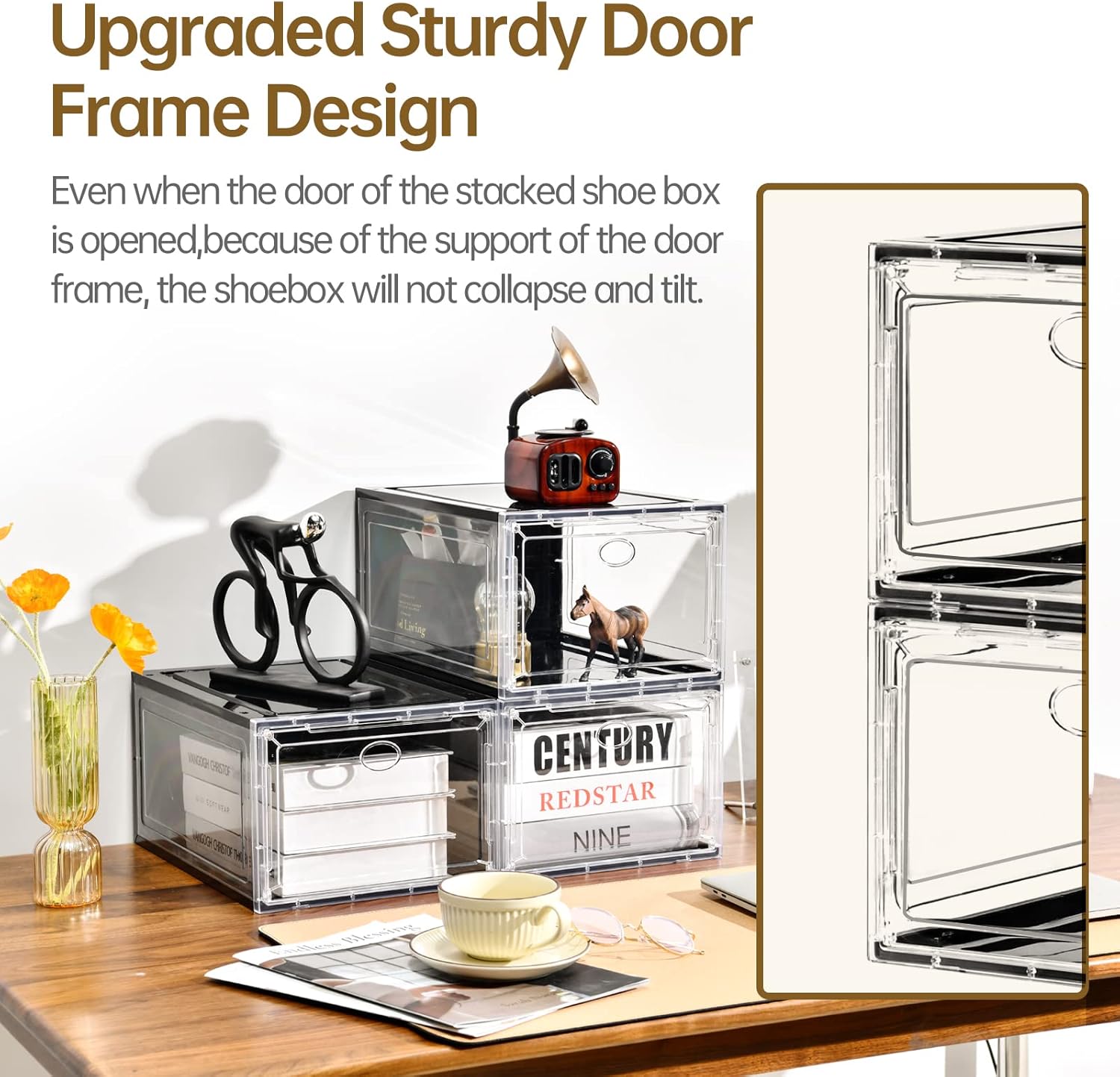 10 Pack Shoe Boxes Stackable,Upgraded Sturdy Storage Boxes with Clear Magnetic Door,Multifunctional Sneaker Organizer Fit up to US Size 12 (13.8”x 9.84”x 7.1”)