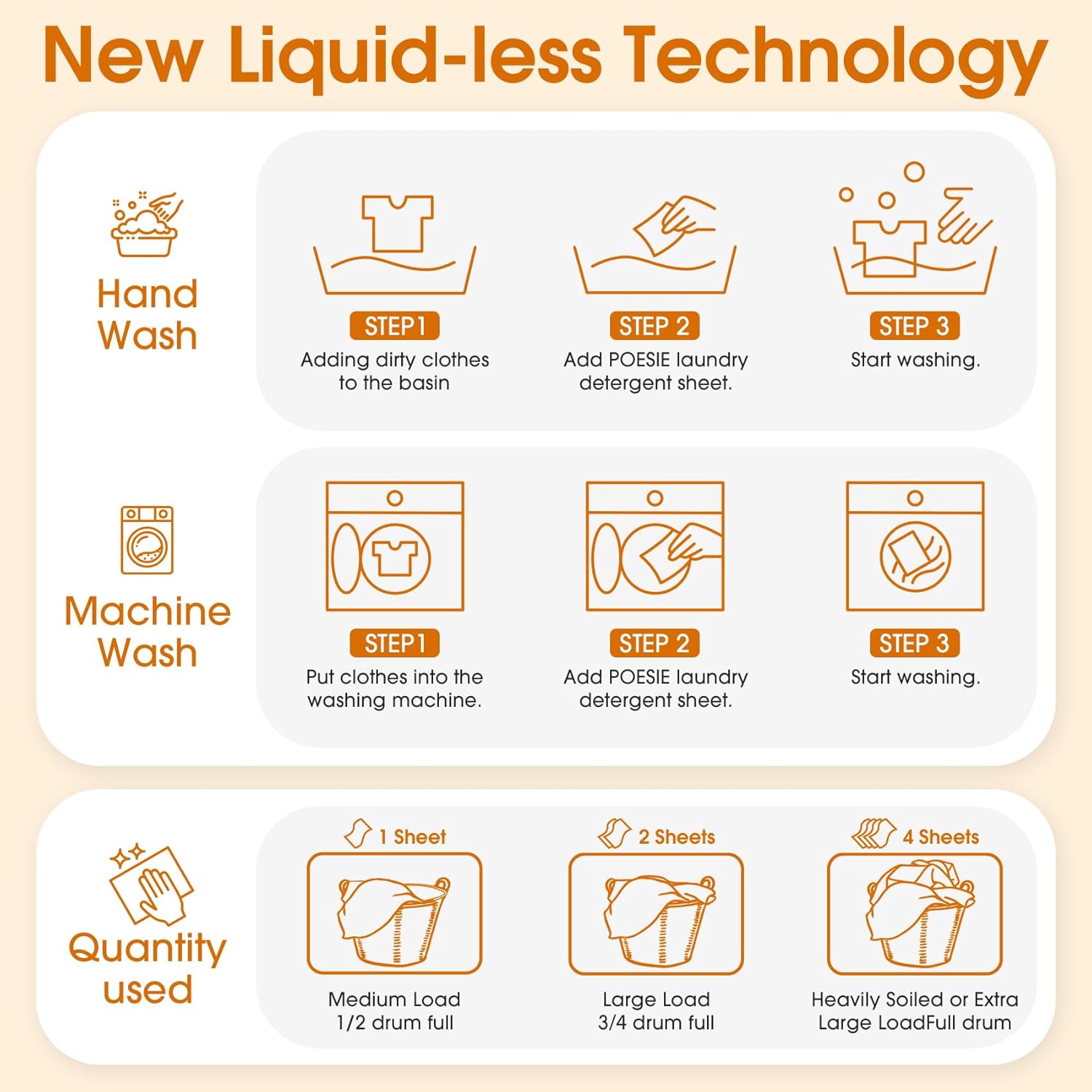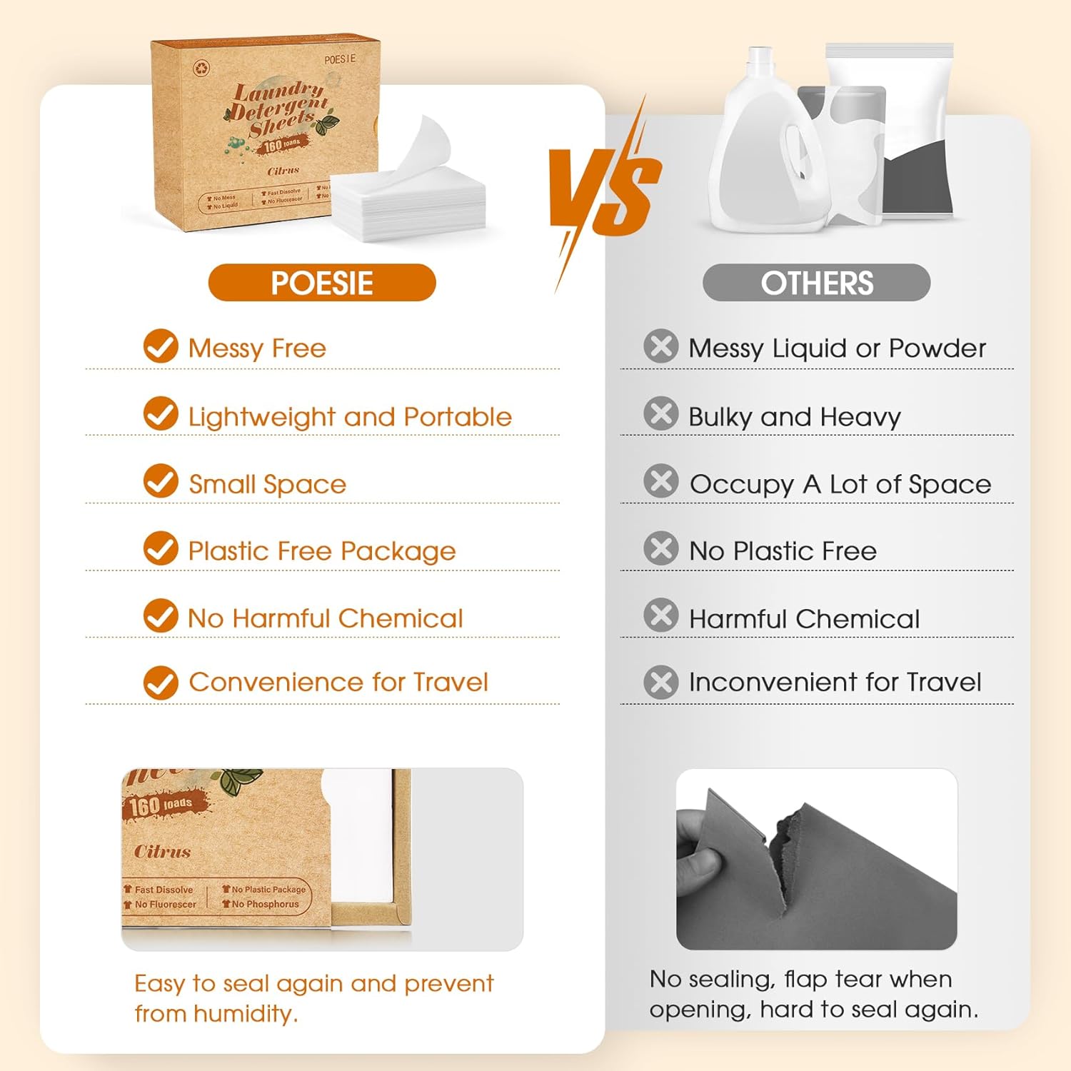 Poesie Laundry Detergent Sheets Citrus Scent 3 Pack 480 Sheets 240 Loads Zero Plastic Portable Green Package Liquid Less HE Washing Detergent Strips for Save Place Traveling