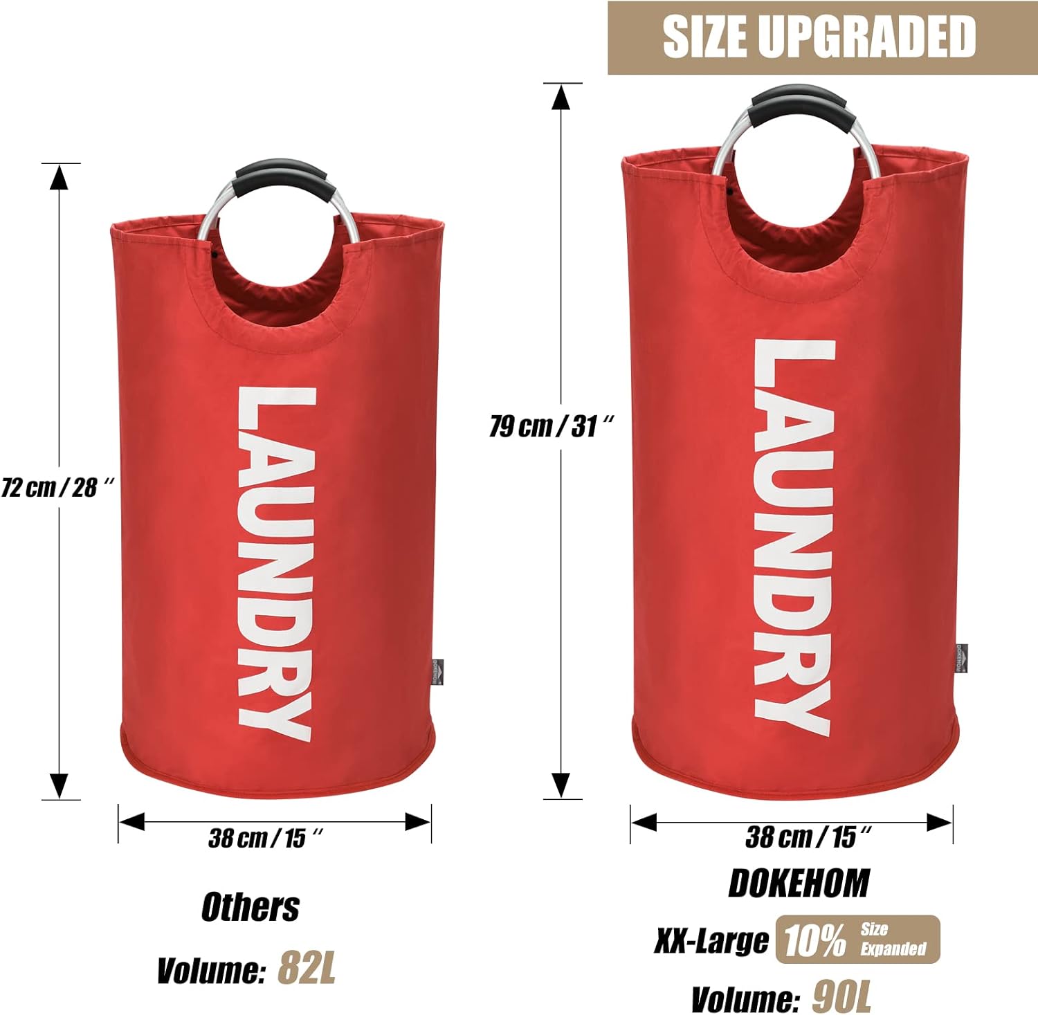 DOKEHOM 90L Large Laundry Basket, Collapsible Laundry Bag, Freestanding Tall Clothes Hamper, Foldable Washing Bin (Red)