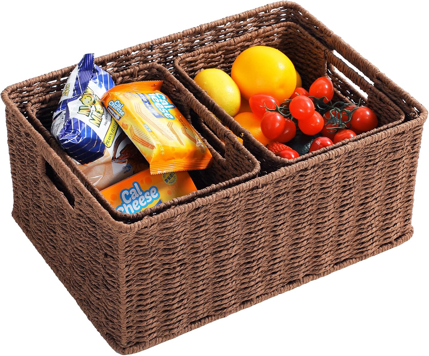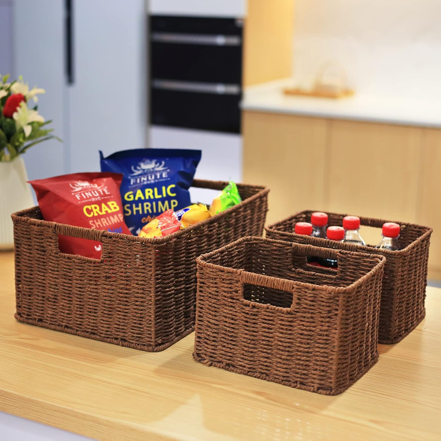 • Durable and Versatile: these pantry baskets are made of a metal wire frame and handwoven twisted paper rope, hand-woven by skilled workers, clean up and organize your home with these rattan-style plastic baskets.