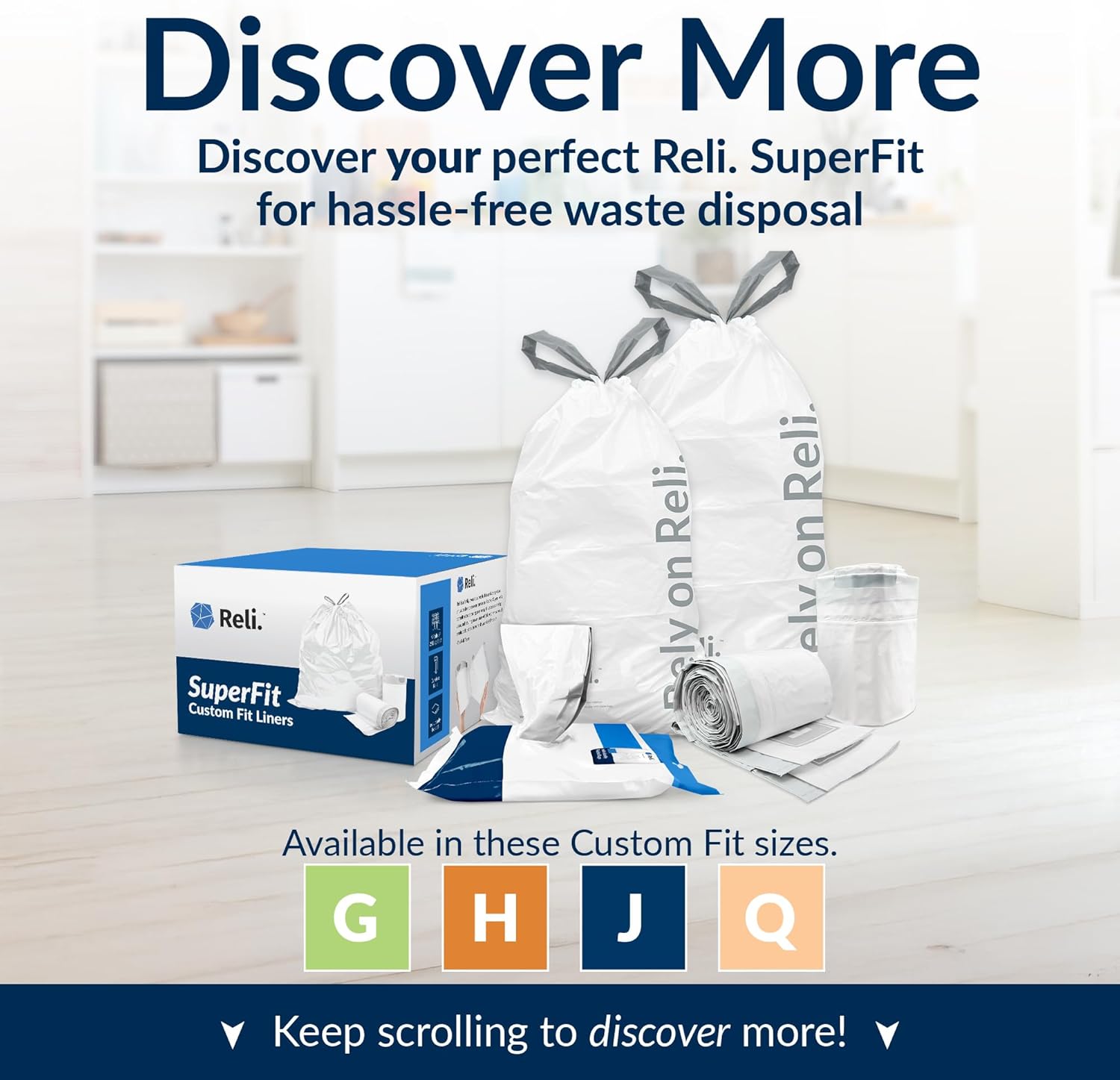 • ONE BAG AT A TIME: Reli.'s SuperFit Rolls let you pull liners one by one, without the hassle of perforations or unraveling