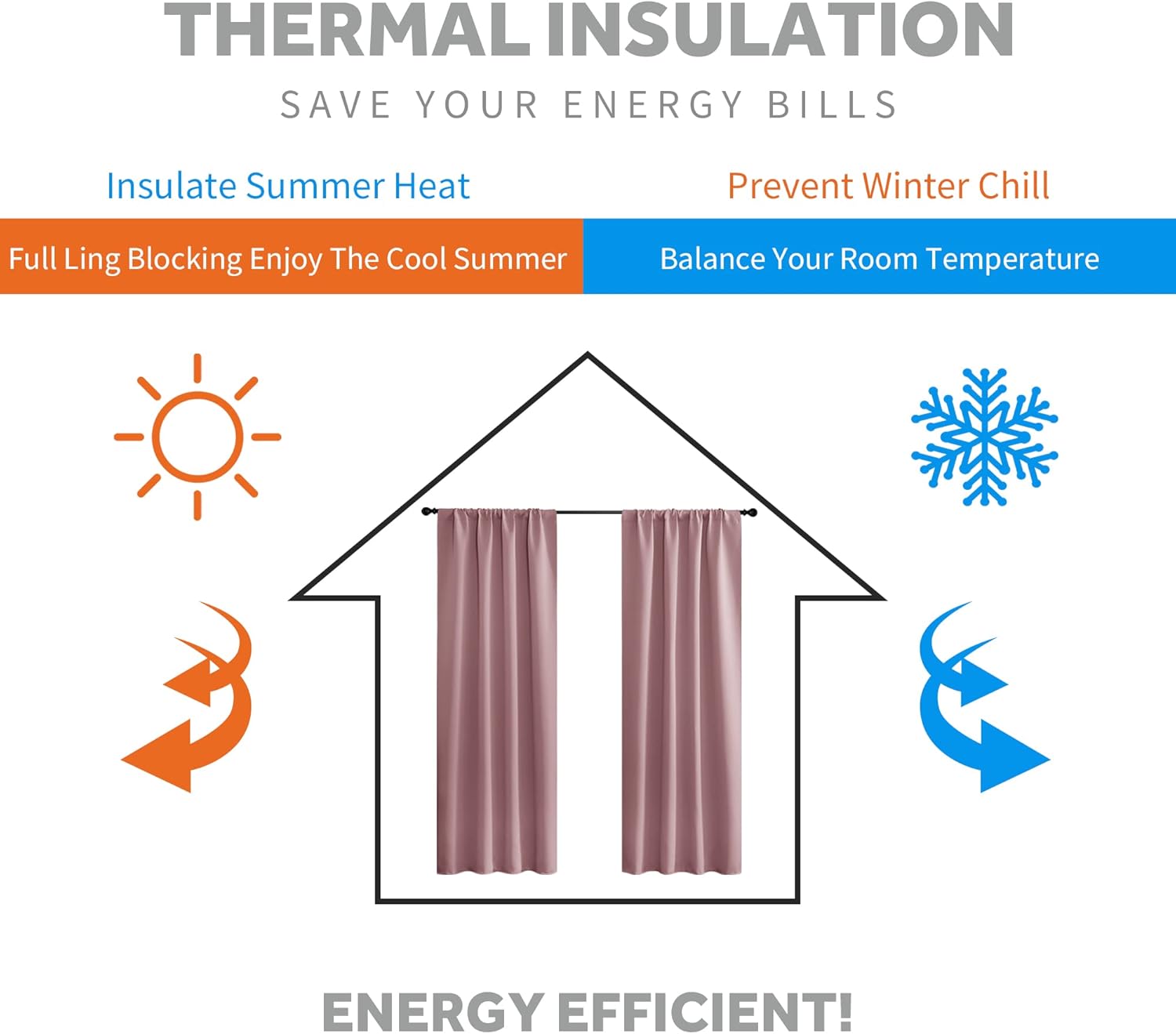 RYB HOME Bedroom Curtains Blackout - Light Block Energy Efficiency Small Window Treatment Drapes for Kitchen Dining Baby Nursery Morden Decor, W 42 x L 63 inch, Dusty Rose, 2 Panels