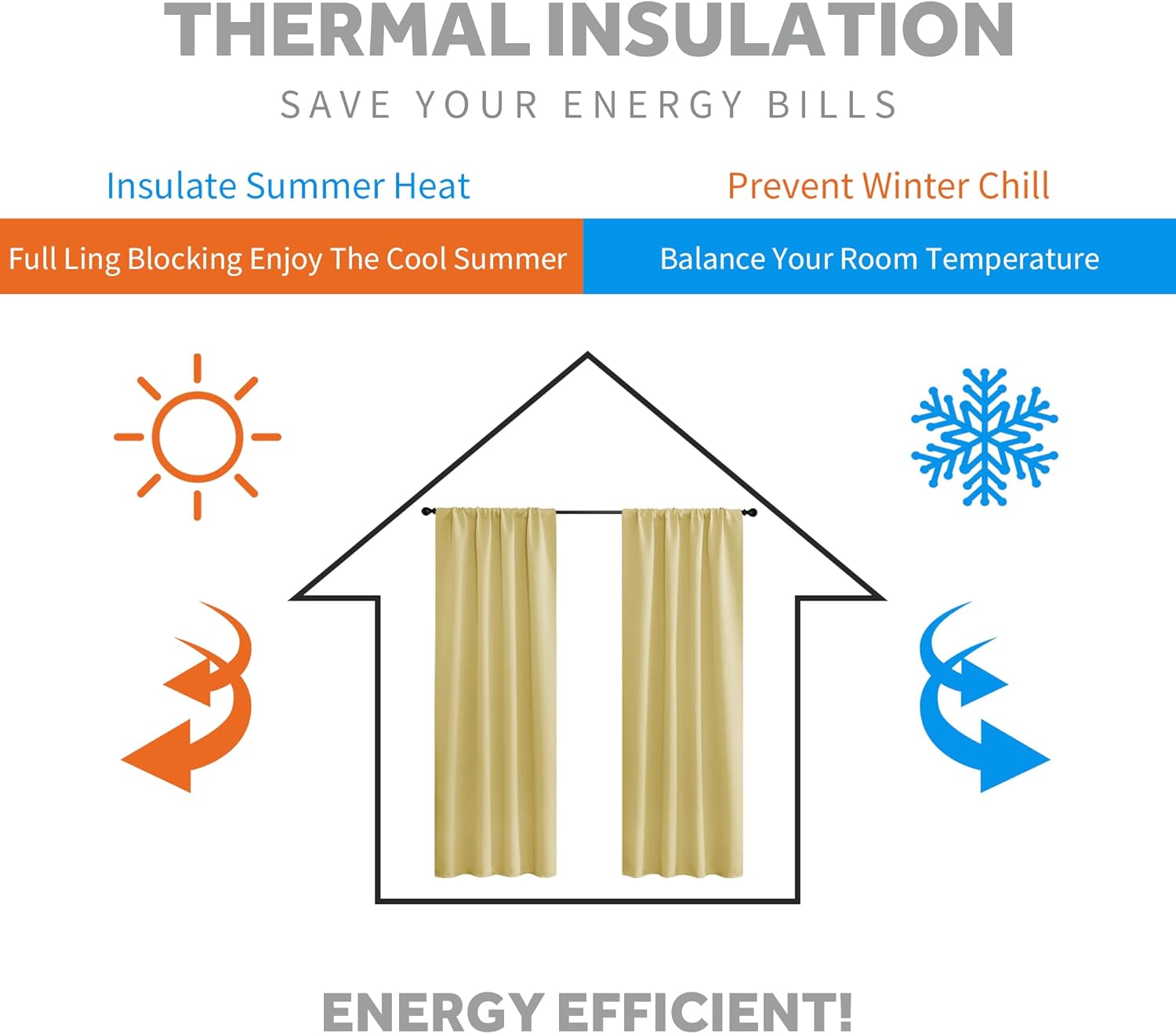 • LIGHT BLOCKING - Curtains block 85-95% sunlight and UV rays (Dark color works better) for maximum privacy and undisturbed sleep. Thermal property of the blackout curtains ensure that the room temperature is regulated. Protect your indoor furniture from directly exposing to the sun.