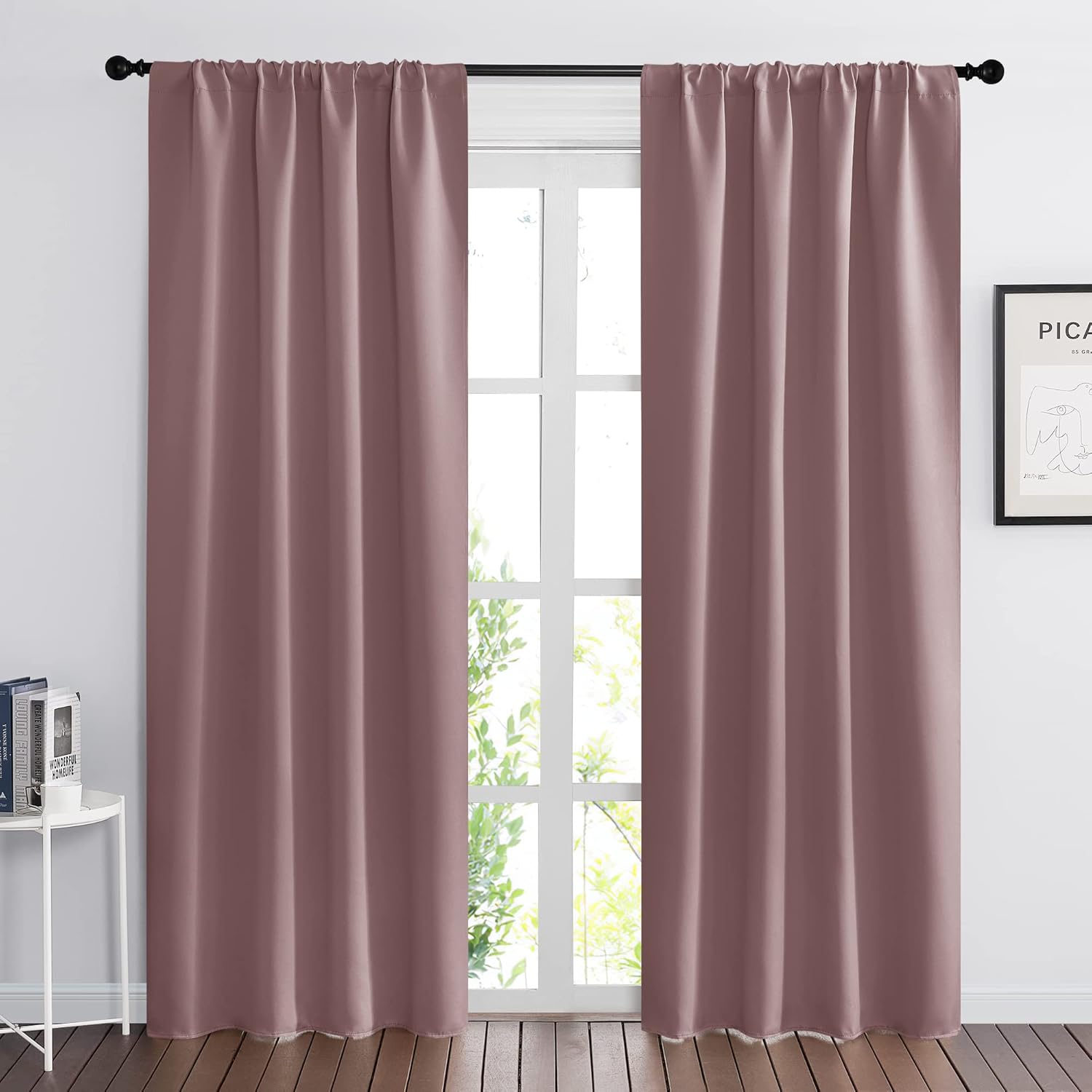 RYB HOME Living Room Curtains Blackout - Light Block Energy Efficiency Small Window Treatment Drapes for Kitchen Dining Patio Sliding Door Farmhouse Decor, W 70 x L 84inch, Dusty Rose, 2 Panels