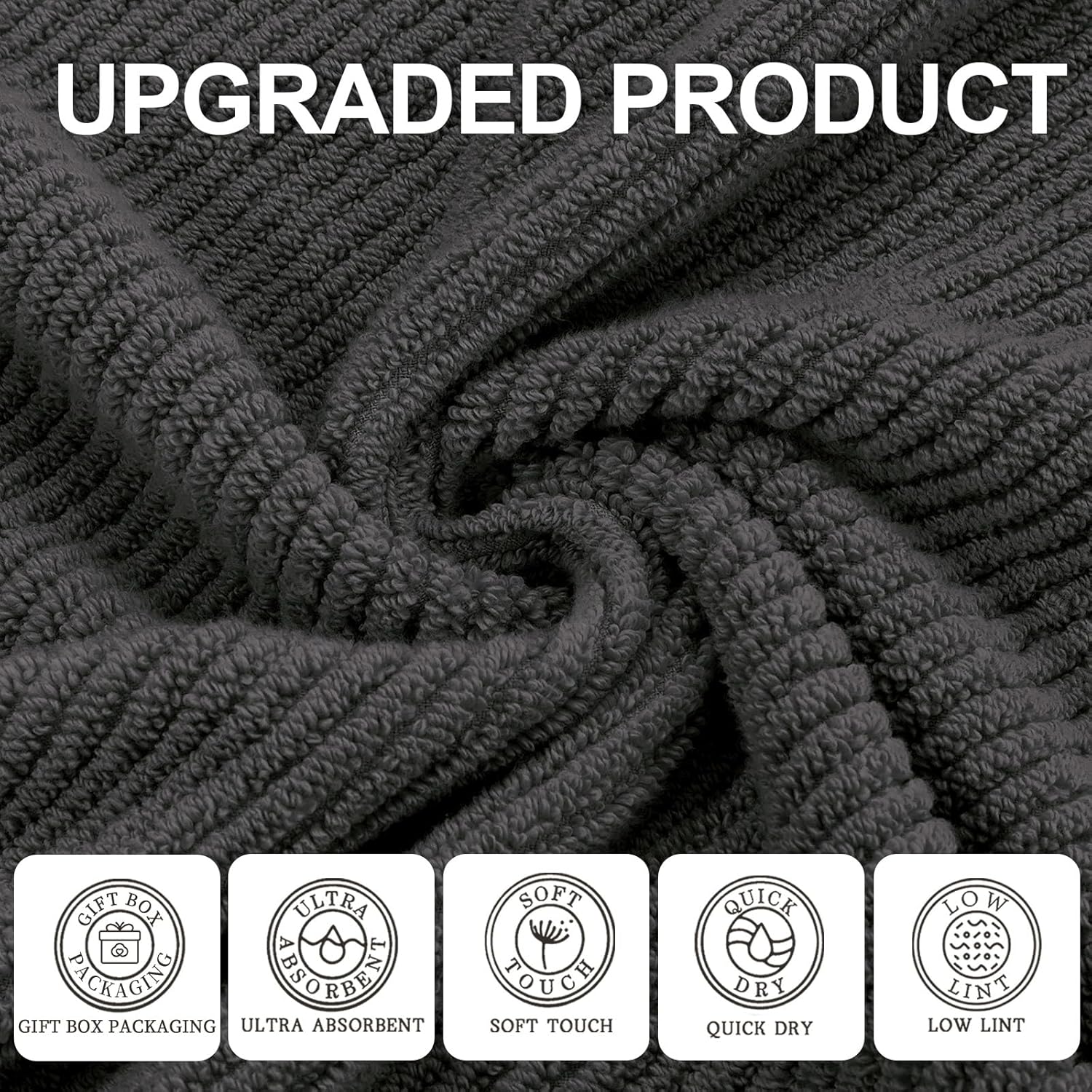 VOOVA & MOVAS Grey Bath Towels (4PC, Large 30"x56") - 100% Cotton | Quick Dry | Light Weight | Thick | Soft | Absorbent, Luxury Hotel Shower Towel, Bath Towel Gift Set, Dark Gray