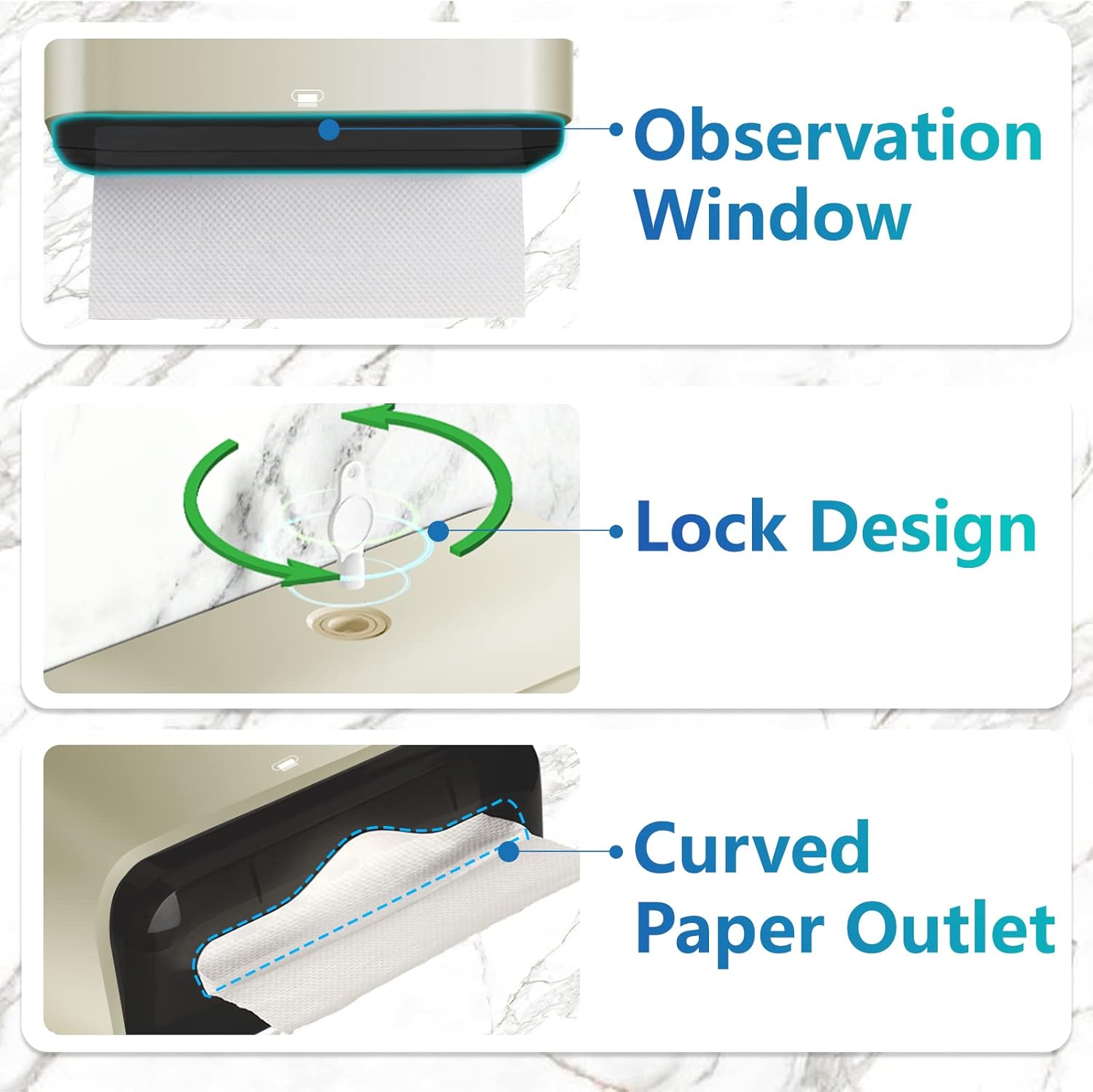 • Durable & Tamper-Proof Design: Made from sturdy ABS plastic, this C fold paper towel dispenser resists cracks and scratches. Features a lock to prevent tampering, ensuring cleanliness in shared spaces.