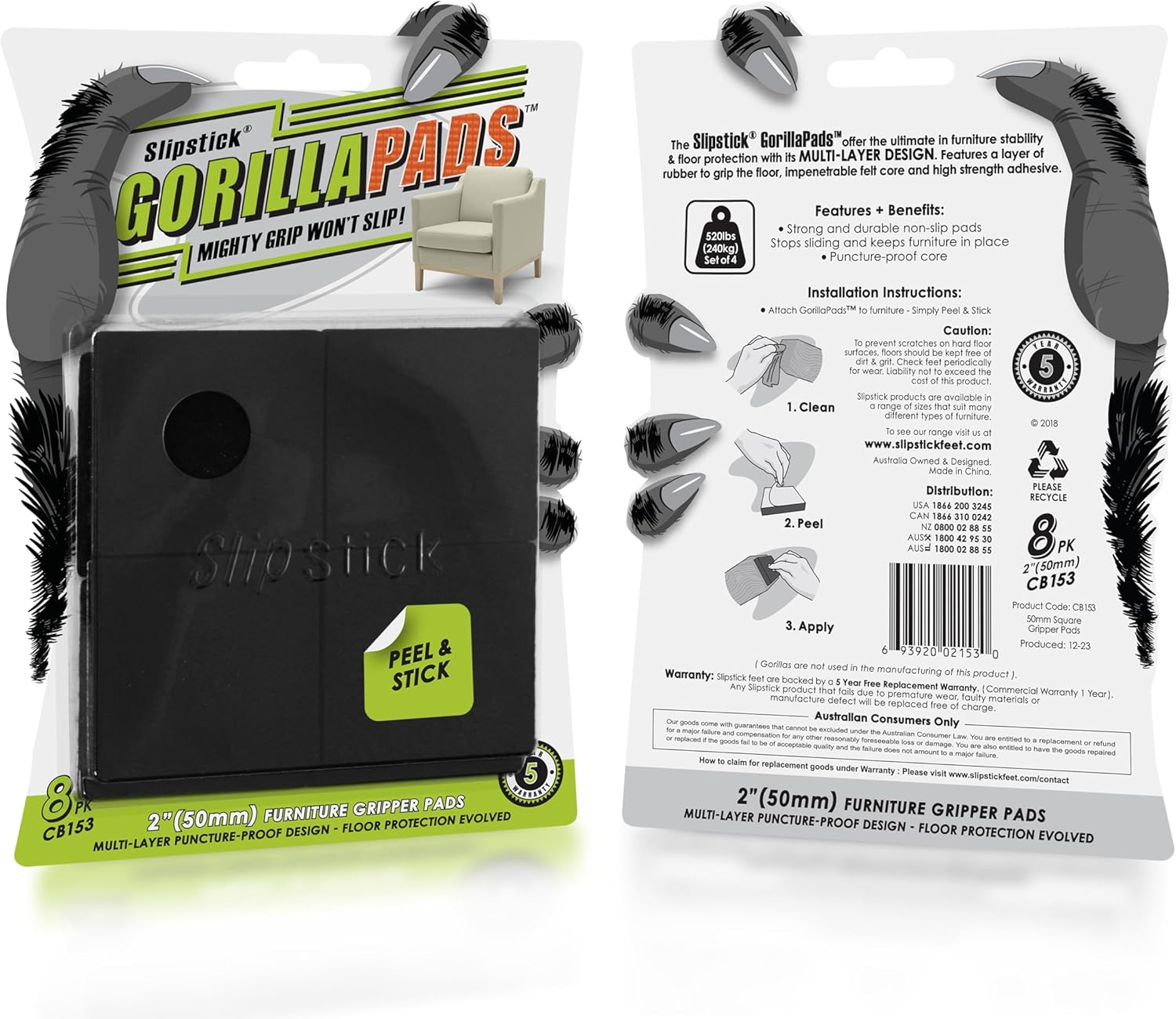 • Mighty grip that wont slip – Gorillapad furniture grippers by Slipstick are the universal solution to stop unwanted movement or sliding of furniture / objects and effectively protect hard surfaces from scratches or damage. Premium adhesive non slip furniture pads.