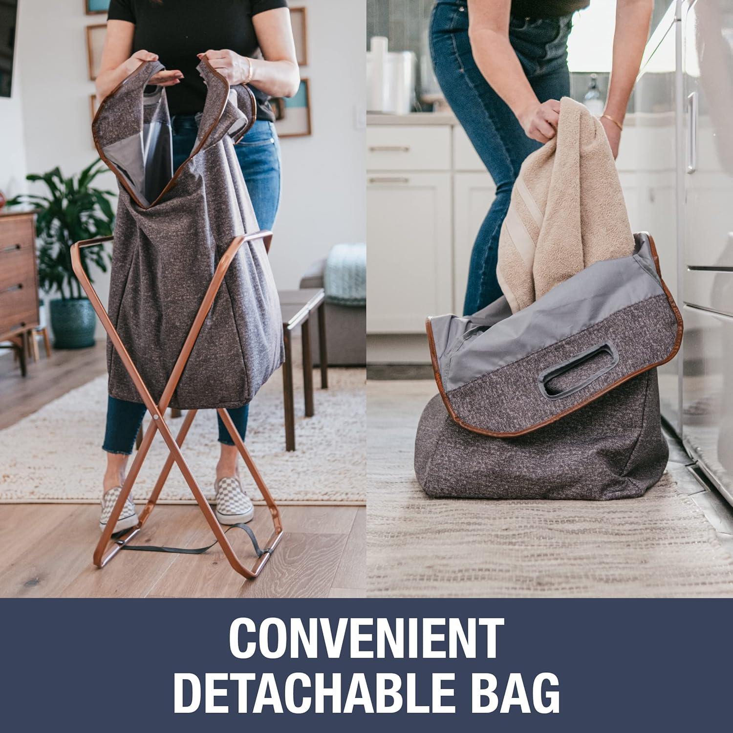 • STYLISH - The upgraded metal x-frame gives a chic and modern aesthetic and the detachable bag is made with premium fabrics and vegan leather accents; great in a bedroom, bathroom, or other living space
