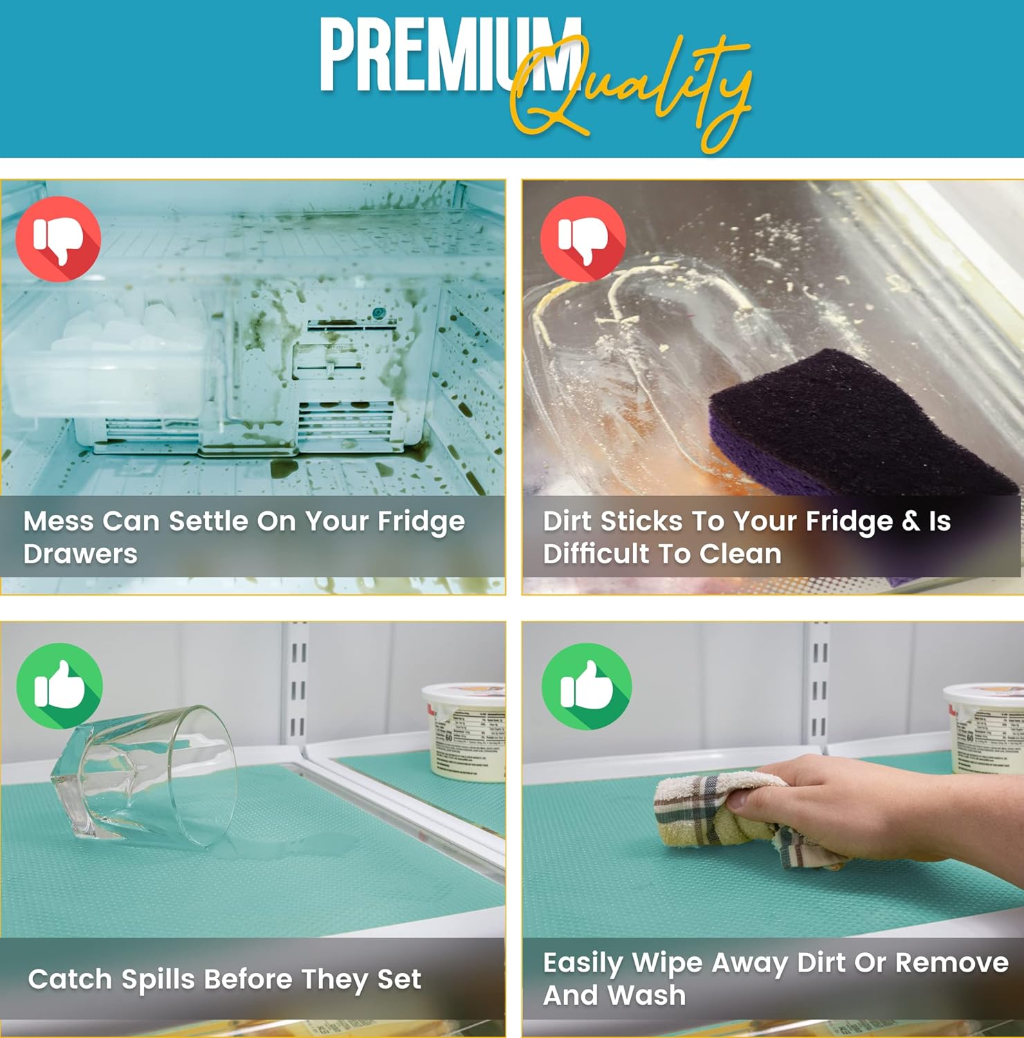 - MULTIPLE USES: These liners can work as fridge shelf liners, drawer liners and cabinet drawer liners - the uses are endless. Our fridge organizer liners are a must have kitchen organization gadgets for homes and kitchen accessories. Simply cut to size using scissors to fit the liner mats anywhere in your house, as needed