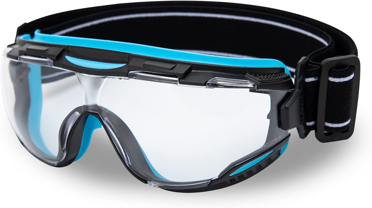 DEX FIT Protective Safety Goggles SG220; Anti Fog & Scratch, Z87 Eye Protection for Lab, Science, and Chemistry Work, Adjustable for Women and Men, (Black & Blue Frame, Clear Lens, 30cm Strap)