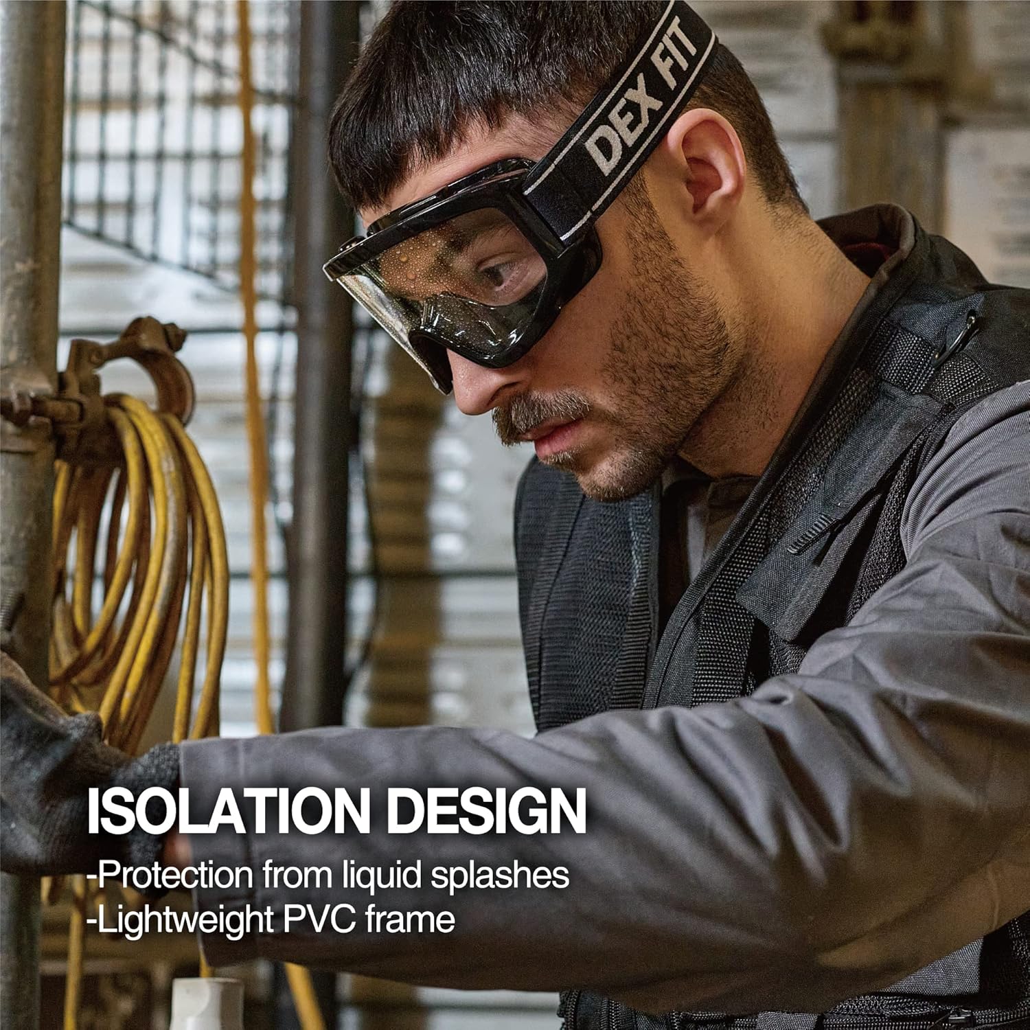 • TOUGH PPE GEAR. Made with Polycarbonate lens and ventilated PVC frame, they create a full seal around the eyes, shielding them from dust, splashes, sawdust, liquids, and debris. Ventilation channels prevent goggles from steaming up.
