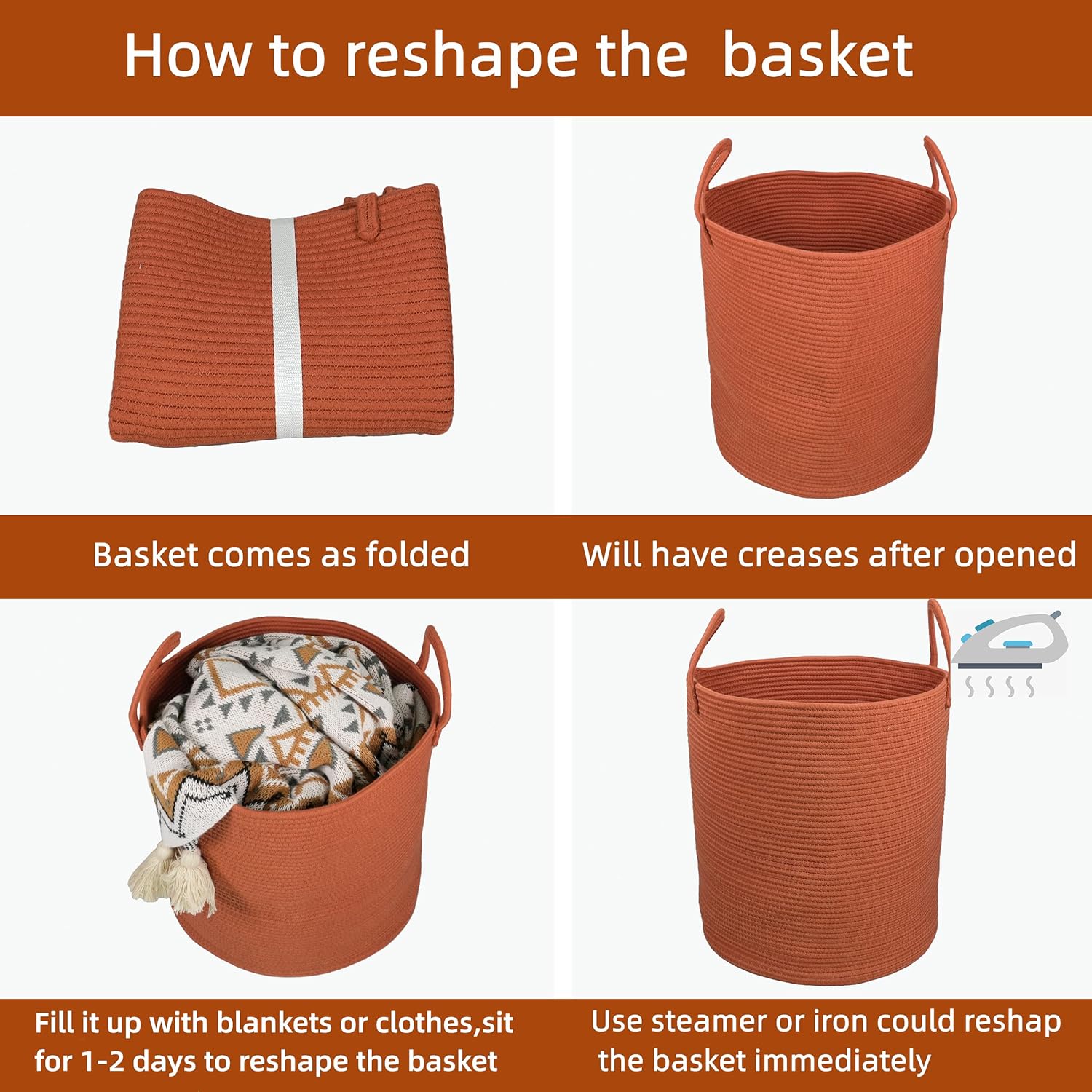 Cotton Rope Laundry Basket Hamper for Clothes Woven Storage Basket for Living Room Bedroom Boho Tall Rope Baskets for Blanket Toys Pillow Towels Baby Nursery Hamper Bin Large rust red