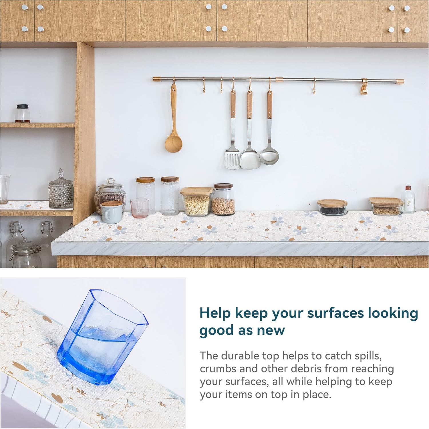 • NON-SLIP SHELF LINER: Non-slip surface so that help glasses and breakable items don’t fall.