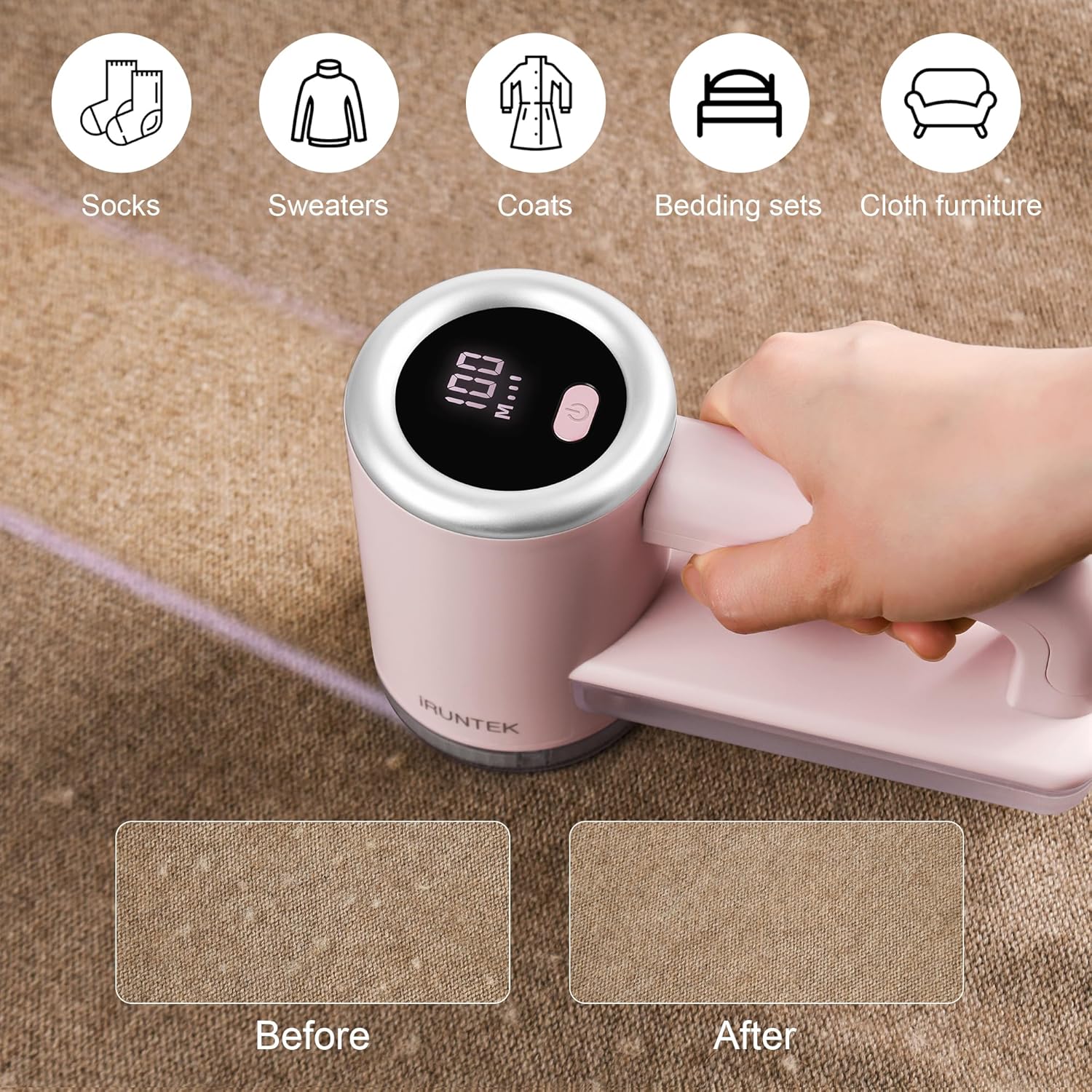 iRUNTEK Rechargeable Fabric Shaver|3-Speed Lint Shaver with LED Display & Large Lint Bin|Sweater Shavers to Remove Pilling & Fuzz|Lint Remover for Clothes & Furniture with Type-C Fast Charging, Pink