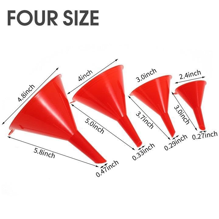 Oil Funnel Set - Plastic Funnel Kit for Car & Kitchen Use - Filling Bottles, Jars & Containers - Mini, Small & Large (4)
