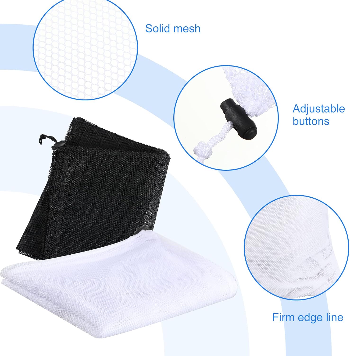 • Drawstring Locking Closure: the mesh bag has a locking buckle and drawstring buckle to prevent overflow; If you are using them as a laundry bag, tuck the buttons inside the bag to prevent the drawstring from loosening in the washing machine