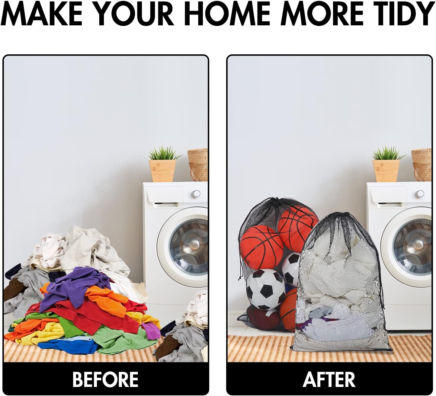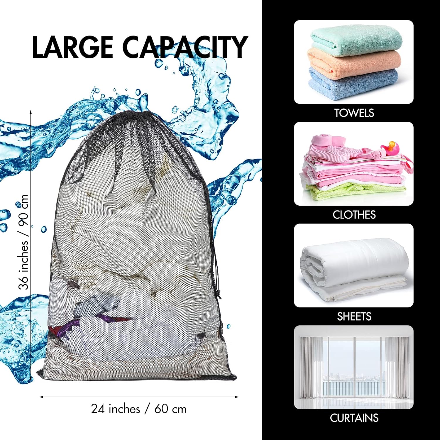 Berlune 30 Pack 24 x 36 Inches Large Mesh Bags for Laundry, Wash bags, Sturdy Mesh Material Closed with Drawstring, Factory, University, Dormitory, Travel and Apartment Dweller (Black)