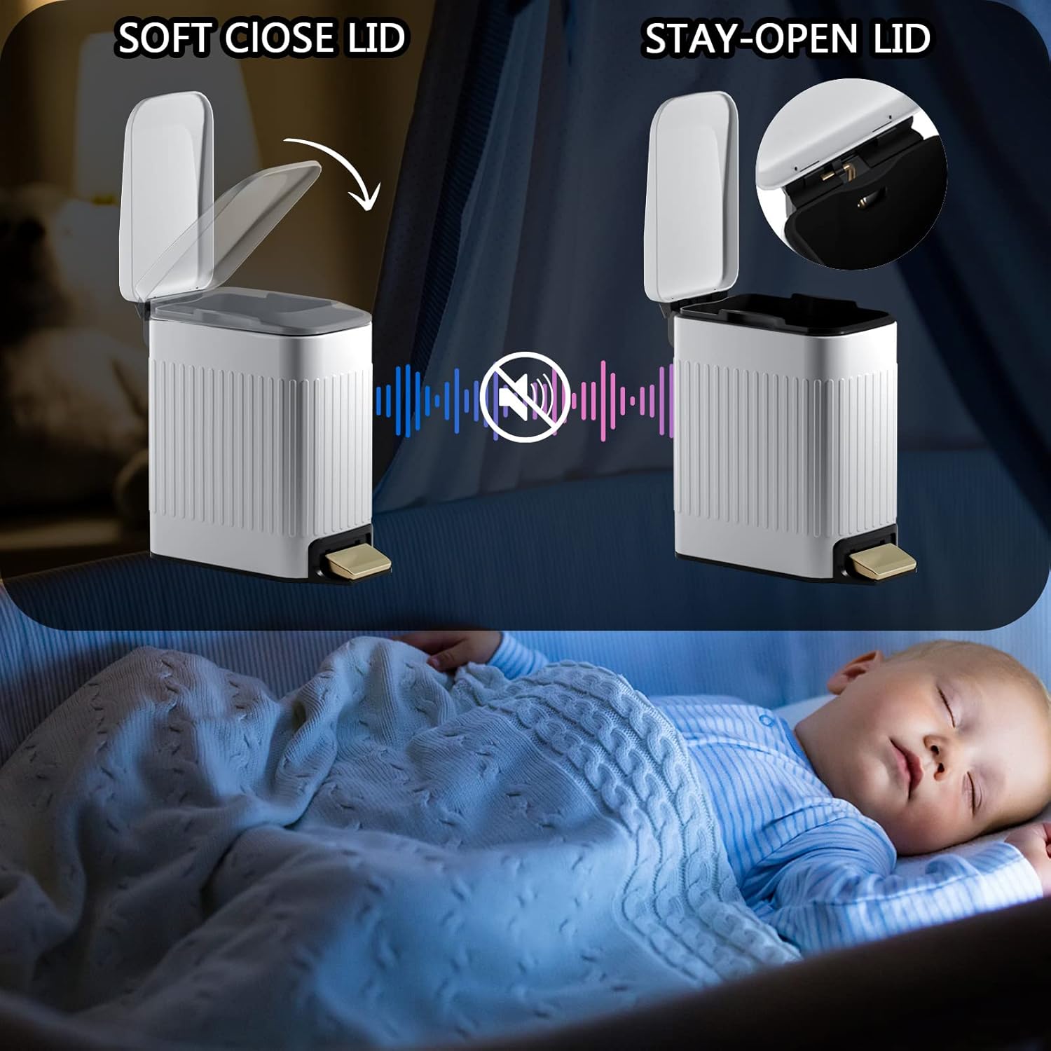 • Silent Soft Close & Stay Open Lid: Stainless Steel trash can, the lid will automatically close after you press the pedal to open the lid, very quiet, no loud noise, don’t worry about disturbing the rest of your family; Push the lid up by hand to hold the lid at 90°to keep it open