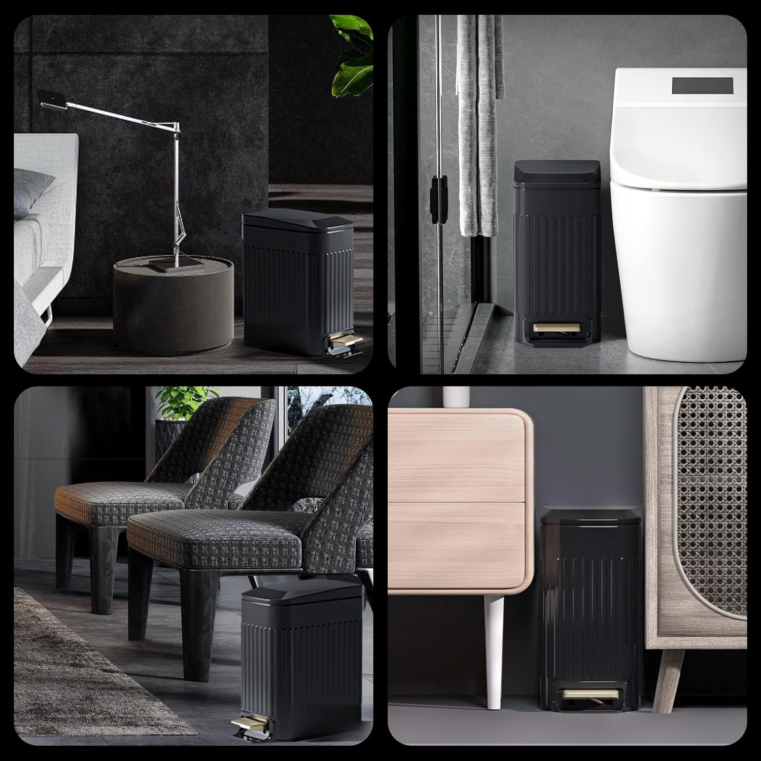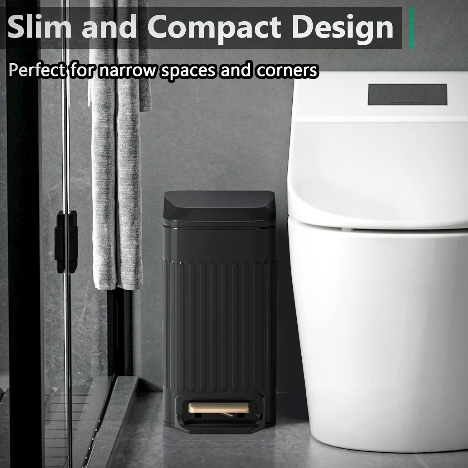 • Slim Design: The rectangular trash can is the perfect size for inside cabinets, under counters, under sinks, and other small narrow spaces; such as bathroom, bedroom, office, toilet, kids room, powder room, farmhouse, apartments, campers, RVs, dorm rooms, etc