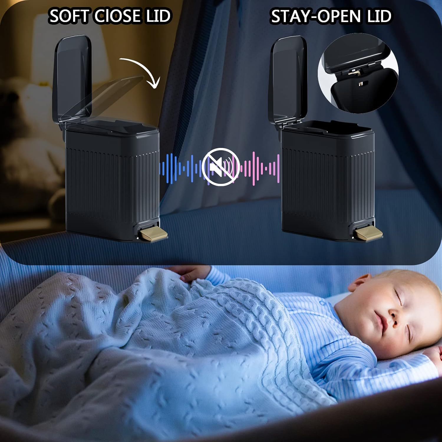 • Silent Soft Close & Stay Open Lid: Stainless Steel trash can, the lid will automatically close after you press the pedal to open the lid, very quiet, no loud noise, don’t worry about disturbing the rest of your family; Push the lid up by hand to hold the lid at 90°to keep it open