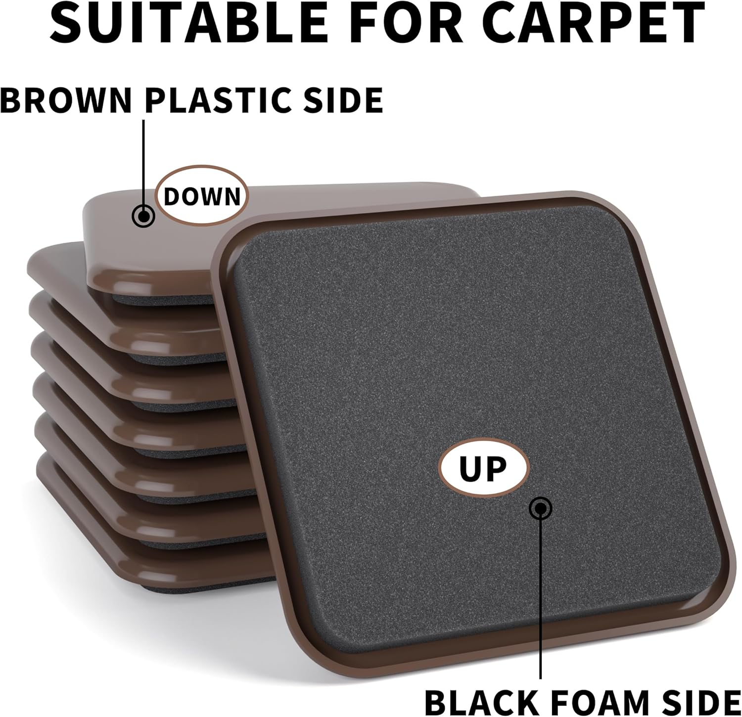 • FURNITURE MOVING PADS PROTECT ALL CARPET SURFACES - 20 pcs 3 1/2” brown square furniture sliders for carpet. Just put these rubber foam under the furniture feet to move it, no more scratches and noise here!