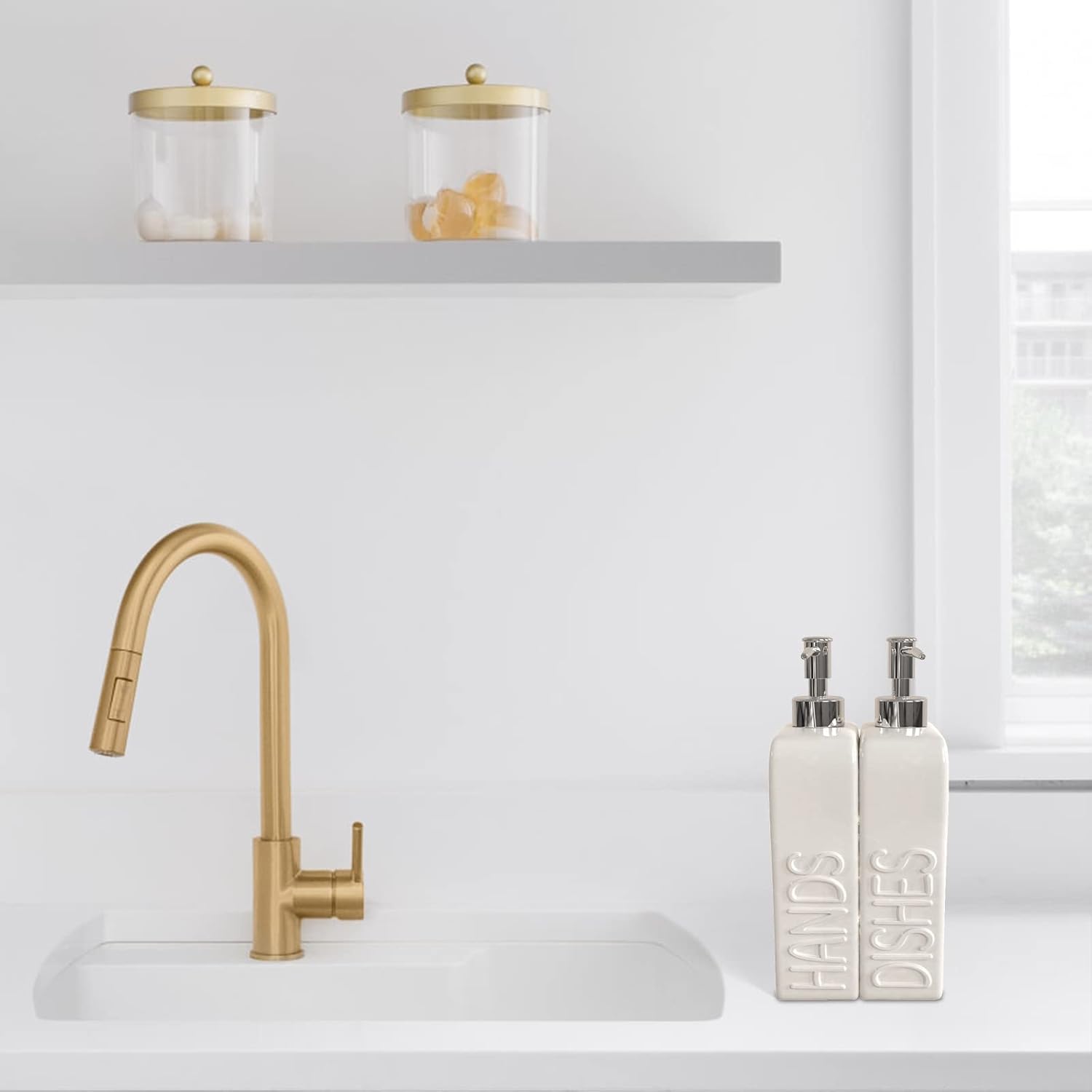 • HIGH QUALITY: Made of high-fired ceramic for a heavy and sturdy feel. Features a rust-resistant stainless steel pump that is smooth and easy to press. Perfect for the kitchen, bathroom, or laundry room