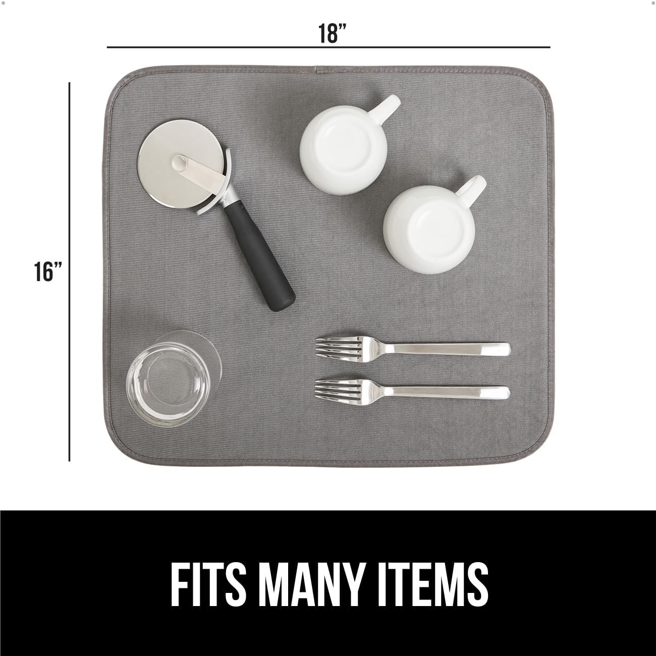GORILLA GRIP Ultra Water Absorbent Microfiber Dish Drying Mat, Quick Dry Thick Mesh, Slip Resistant Pad for Sink Dishes or Under Rack, Kitchen Counter Accessories, 16x18, Machine Wash Mats, Gray