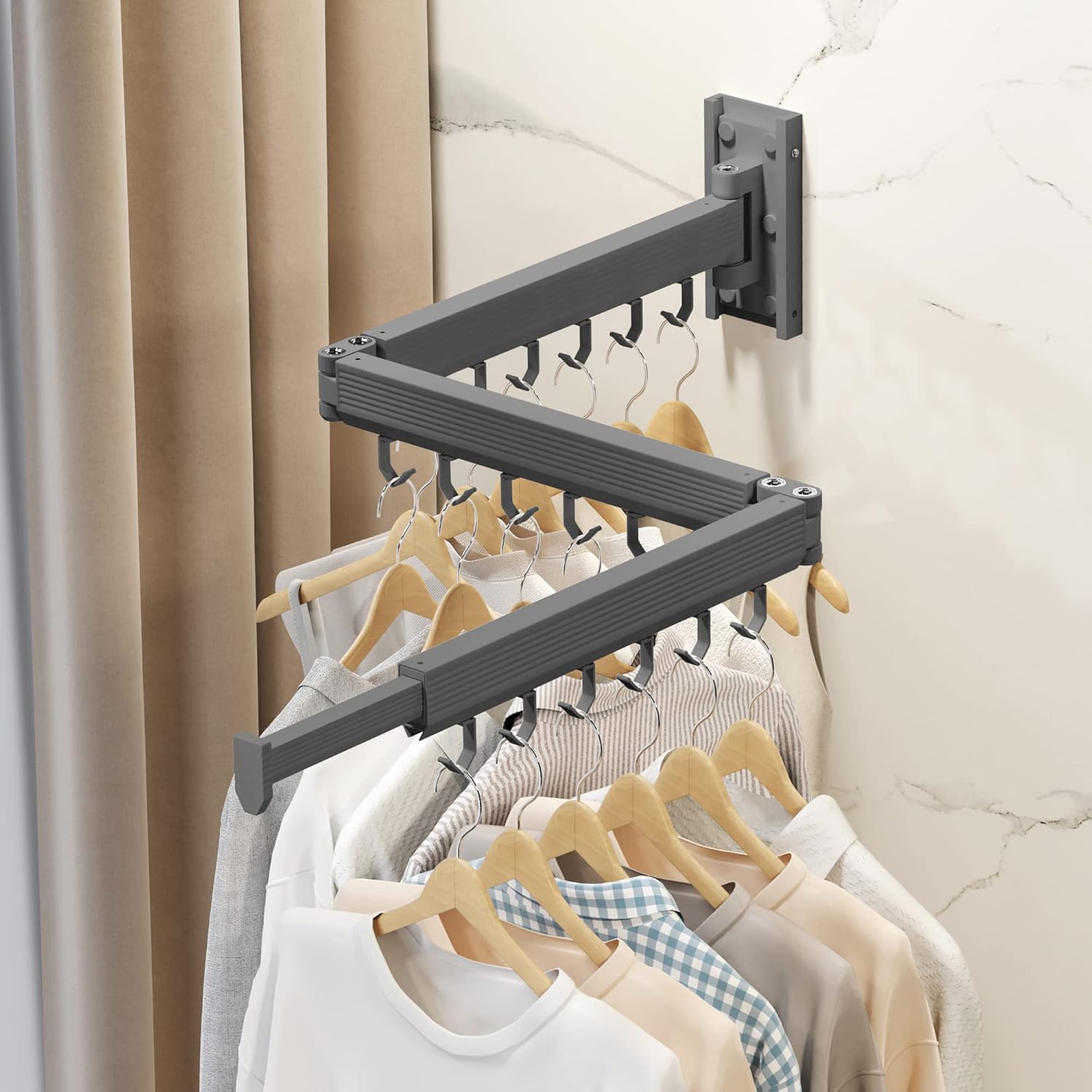 Wall Mounted Clothes Drying Rack,Laundry Drying Rack Wall Mount,Clothes Hanger,Drying Rack Clothing,Retractable Laundry Rack for Hanging Clothes,Collapsible,Foldable,Grey-Hooks