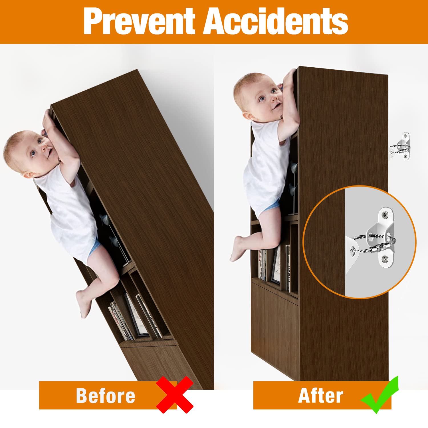 - Baby Safety Guard: Let your little one explore and climb to their heart's content! Baby proof furniture anchors help keep furniture secure from the potential tip-over hazard of curious children. This anchor will help keep furniture upright even if your children pull out the dresser drawer to form a ladder and climb onto the dresser for fun.