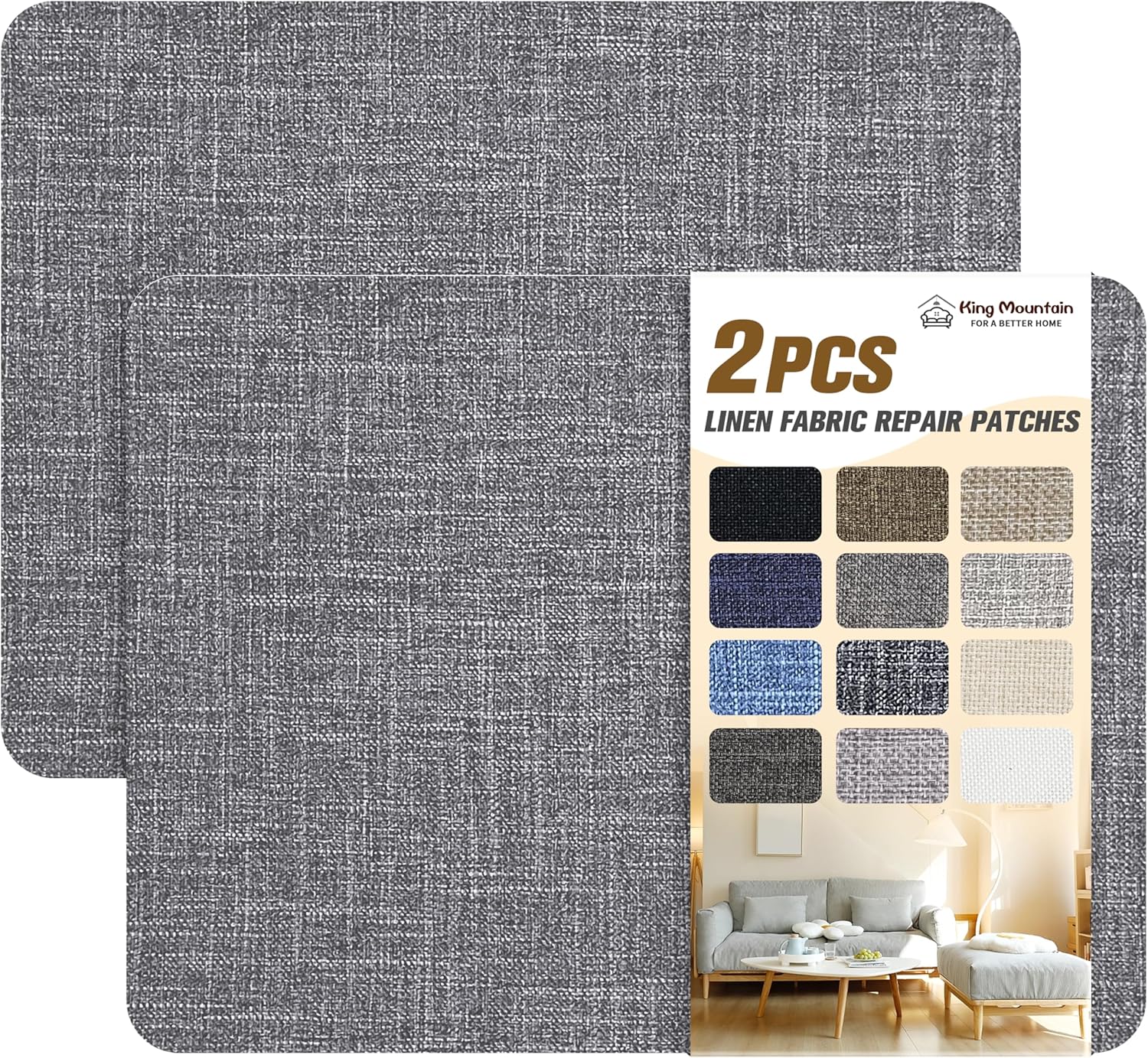 KING MOUNTAIN Fine Linen Repair Patches, 2 PCS, 8" x 11", Dark Grey, Self-Adhesive, Polyester, Rectangular, Linen Patch