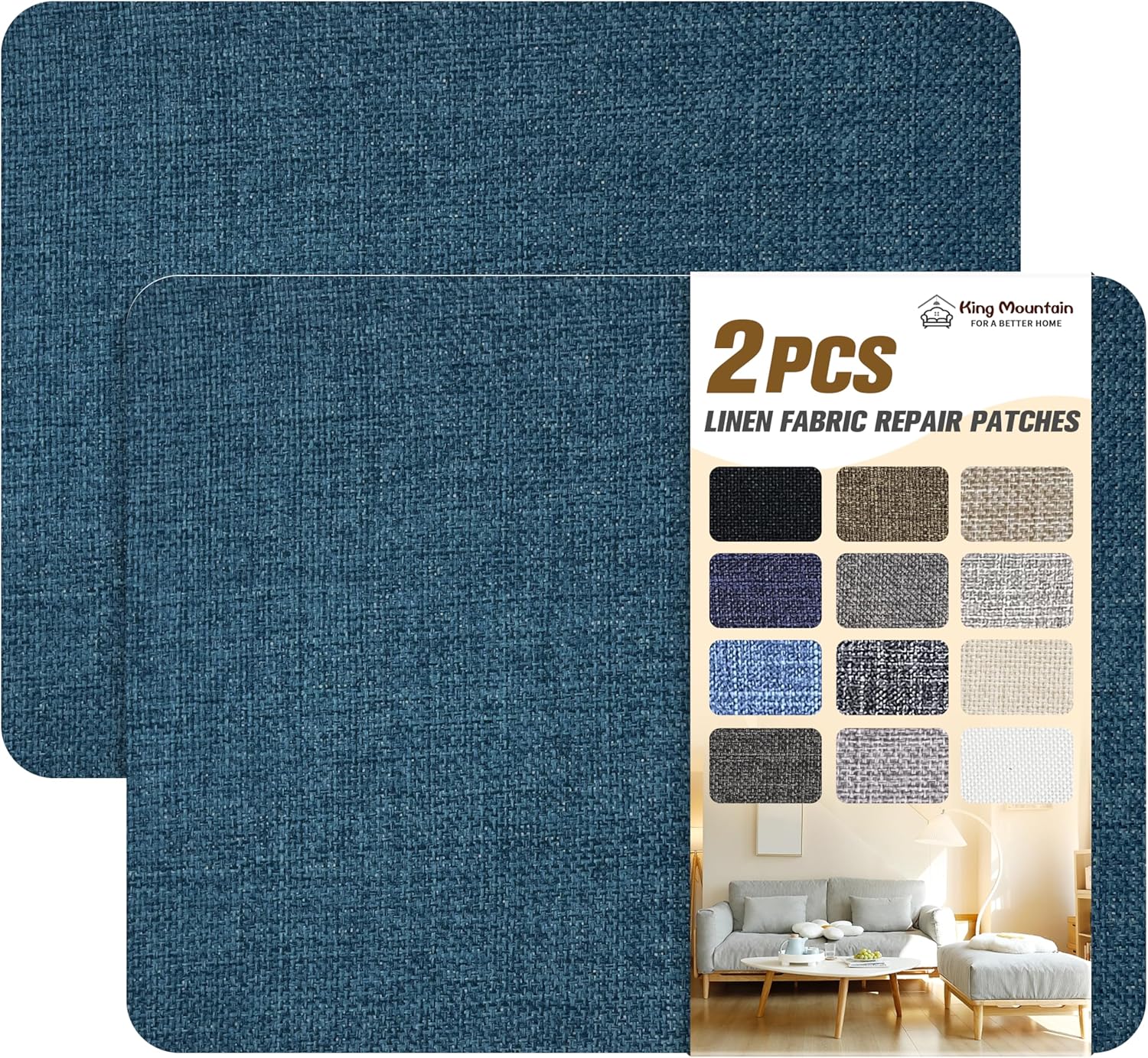 Coarse Linen Repair Patches, Self-Adhesive Linen Fabric Patches, 8X11 inch 2 PCS, Multi Color, Can be Used for Linen Sofa Repair and Linen Clothes Repair(8" x 11"-2PCS,Dark Blue)