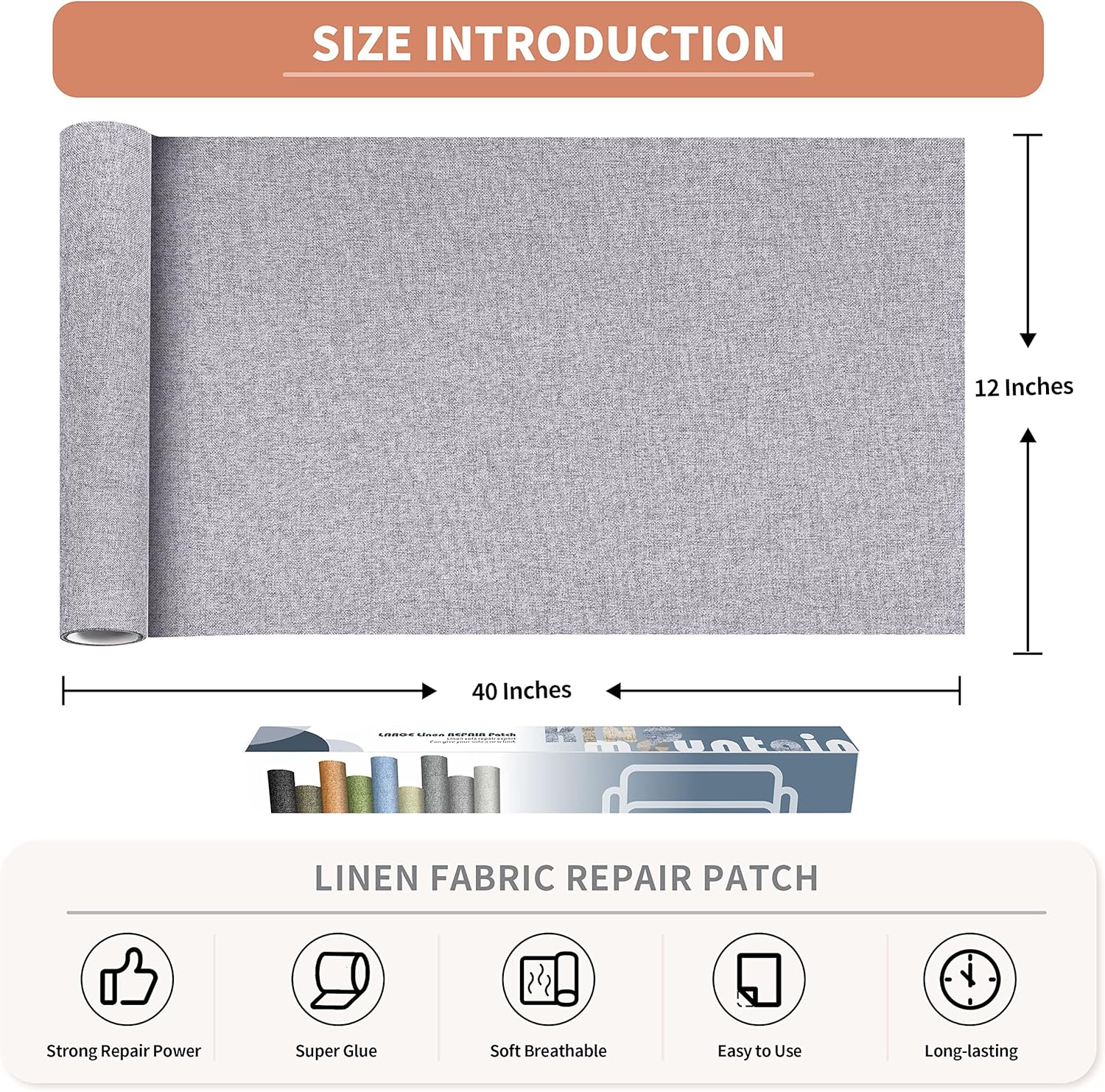 KING MOUNTAIN Fine Linen Repair Patches, Self-Adhesive Linen Fabric Patches, 12X40 inch Extra Size, Multi Color, Can be Used for Linen Sofa Repair and Linen Clothes Repair (12" x 40", Light Grey 3.0)