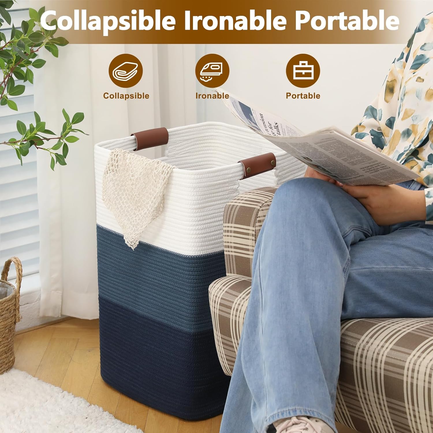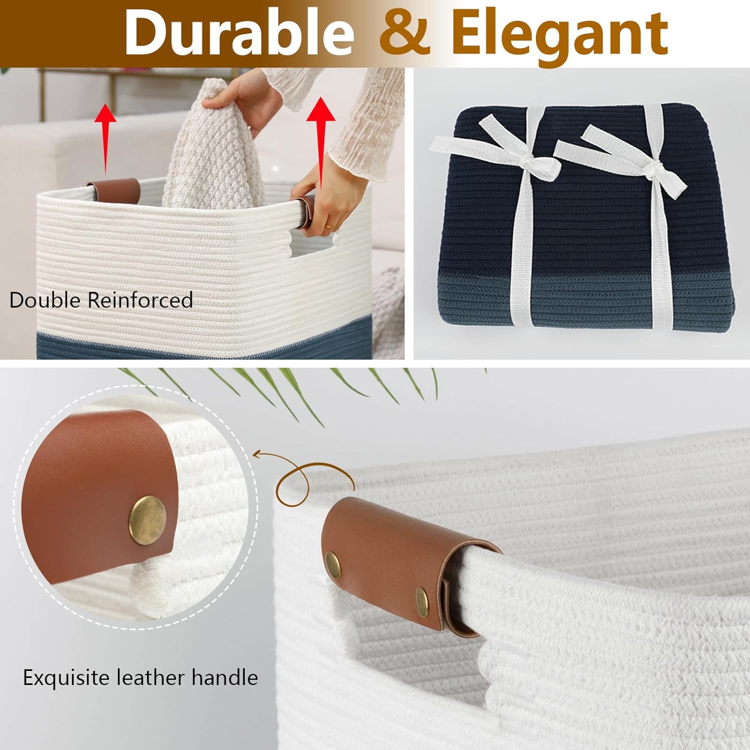 • Natural Handmade & Unique Design: The special hand-woven design makes the style of our blanket basket simpler, the classic color blend seamless with any room decor. The elegant leather handles not only take care of your hands but also add a distinctive highlight to our large baskets