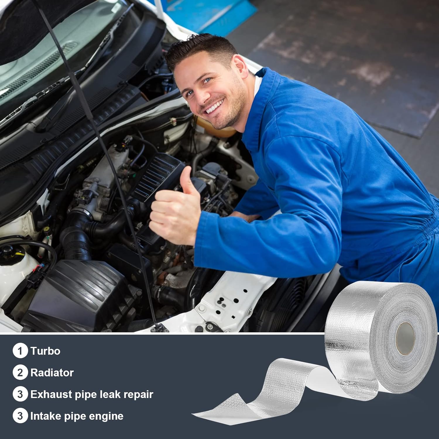 - Quality Material: the adhesive heat shield tape is made of glass fiber fabric with an aluminized outer facing, which is elasticity, wear resistance, heat insulation, high temperature resistant, corrosion resistant and waterproof, and strong adhesion; This foil tape can provide ultimate protection from extreme heat as well as oil spills, dirt, grease and road grime