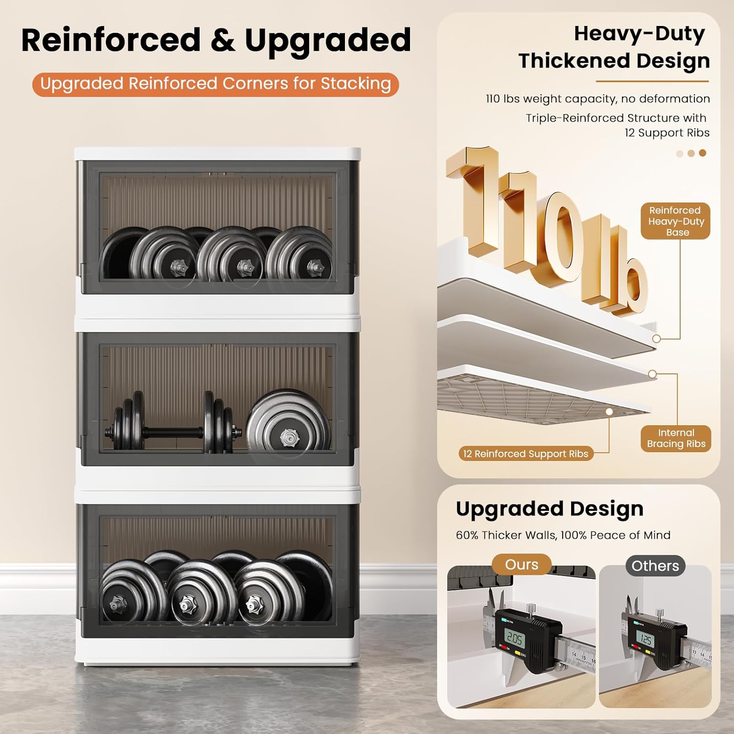 • Quick Assemble & Fold: Our storage containers can be assembled in 1 minute and folds down to 4 inches when not in use, easily tucking under beds/tight spaces—saves 80% of space. Heavy-duty PP plastic (2mm thick walls) supports 110 lbs (50 kg)/pack